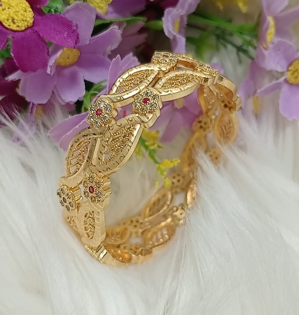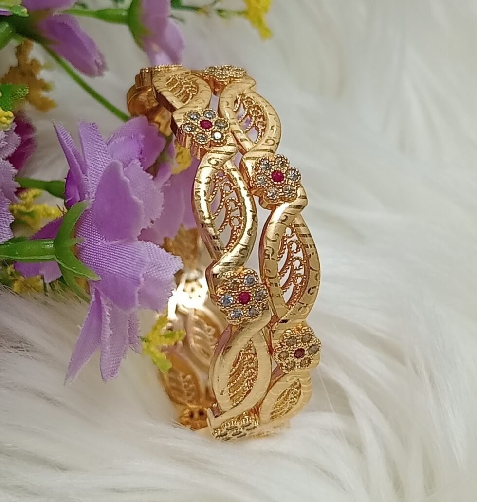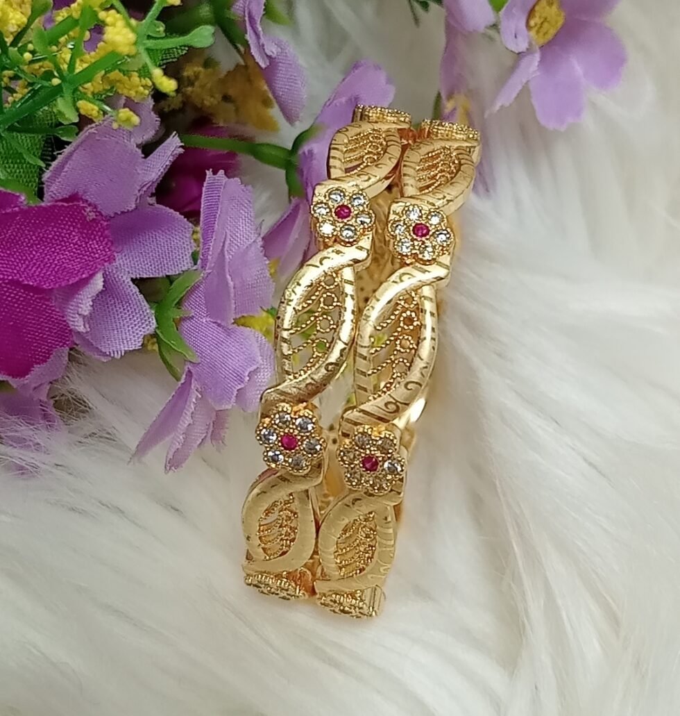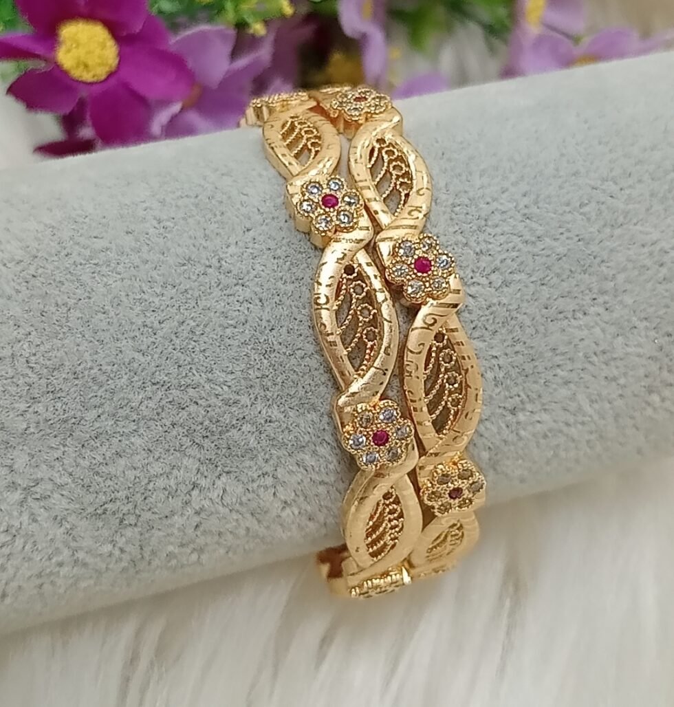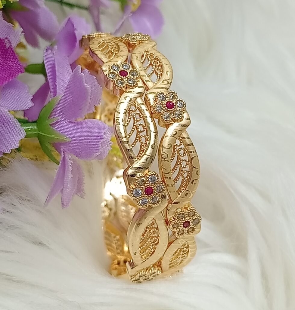 American Diamond Gold Plated Ruby Pink White 2pc Floral Bangles