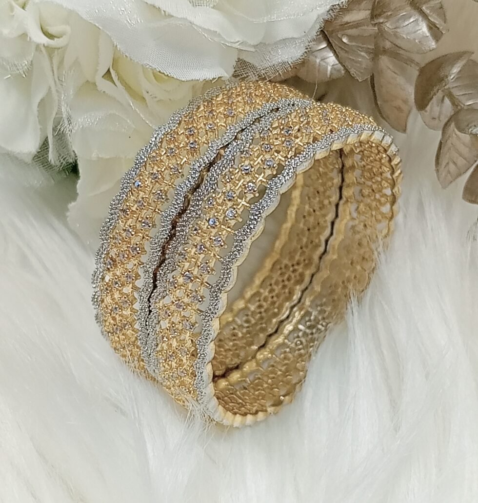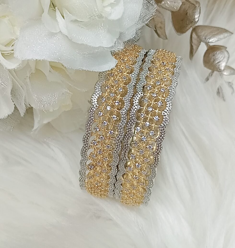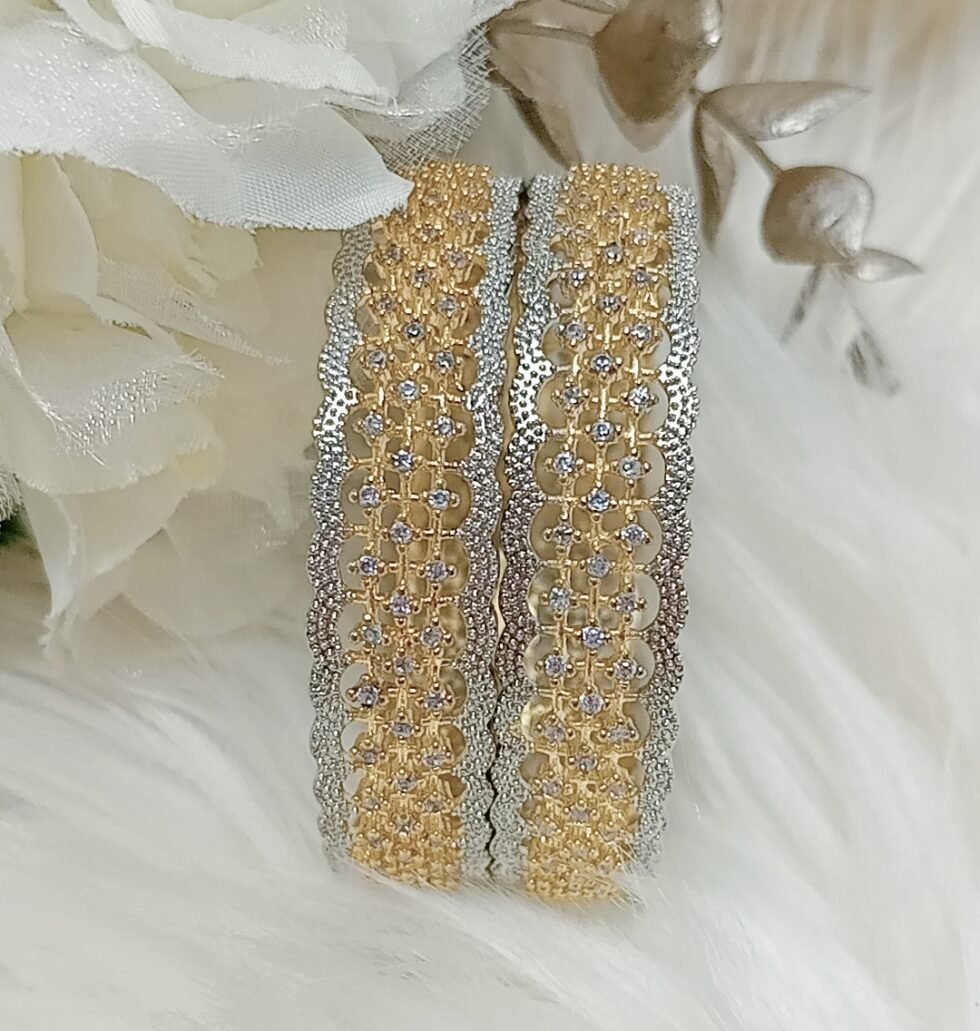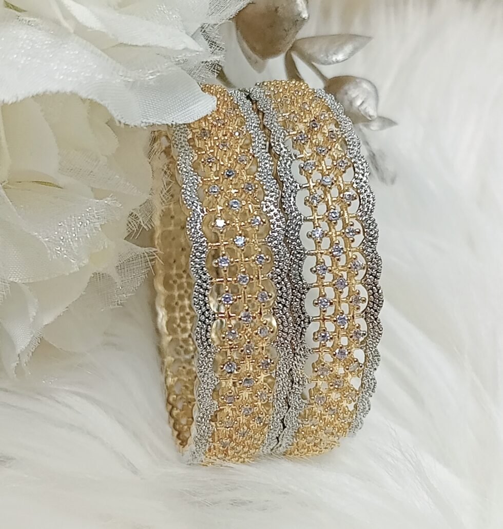 American Diamond Silver Gold Plated 2pc Bangle Set