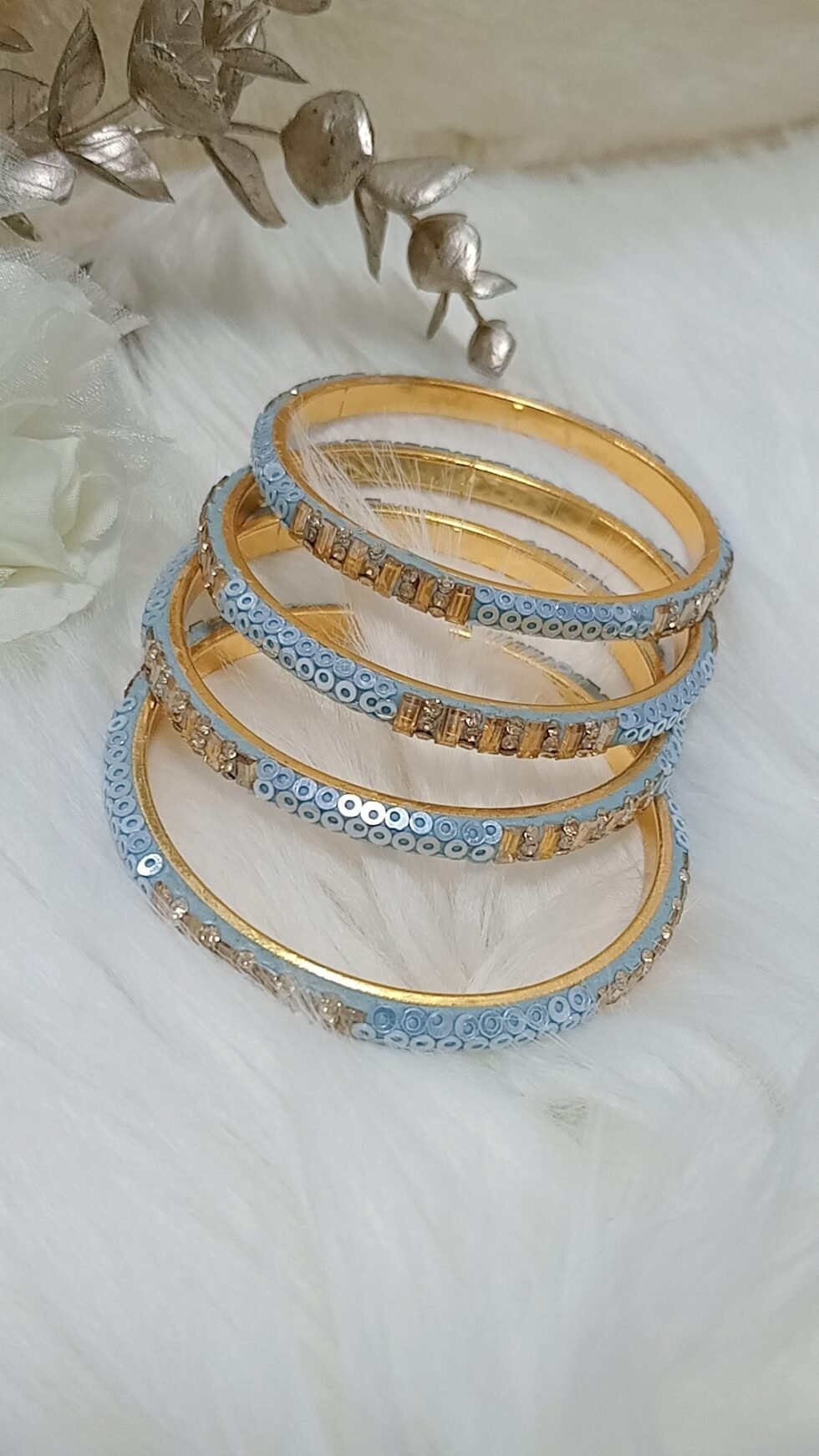 Baby Blue Sequin Gold 4pc Exclusive Bangle Set