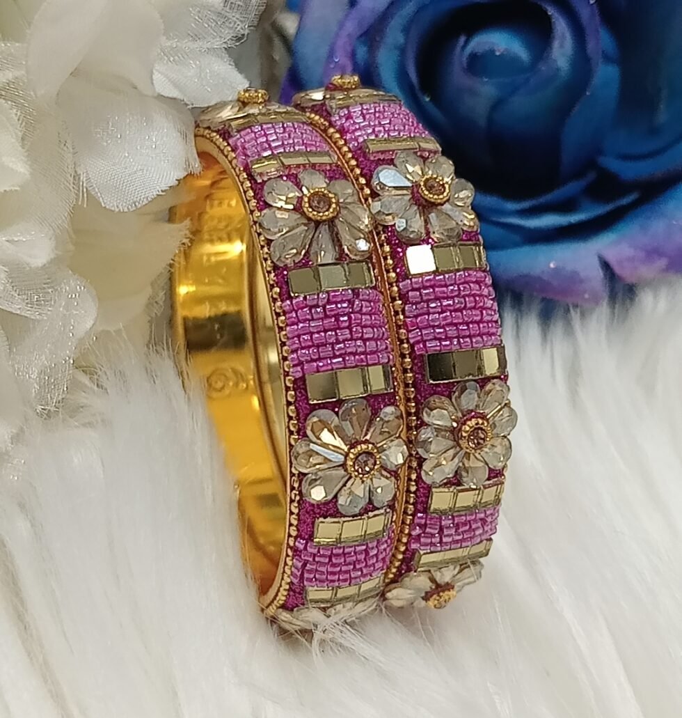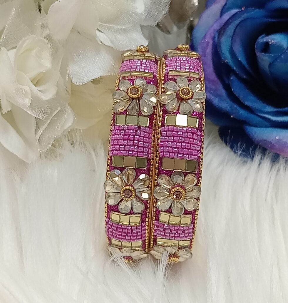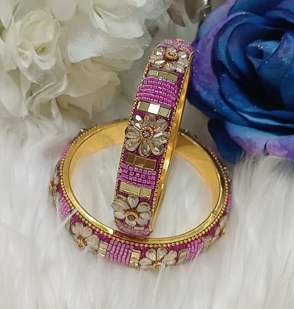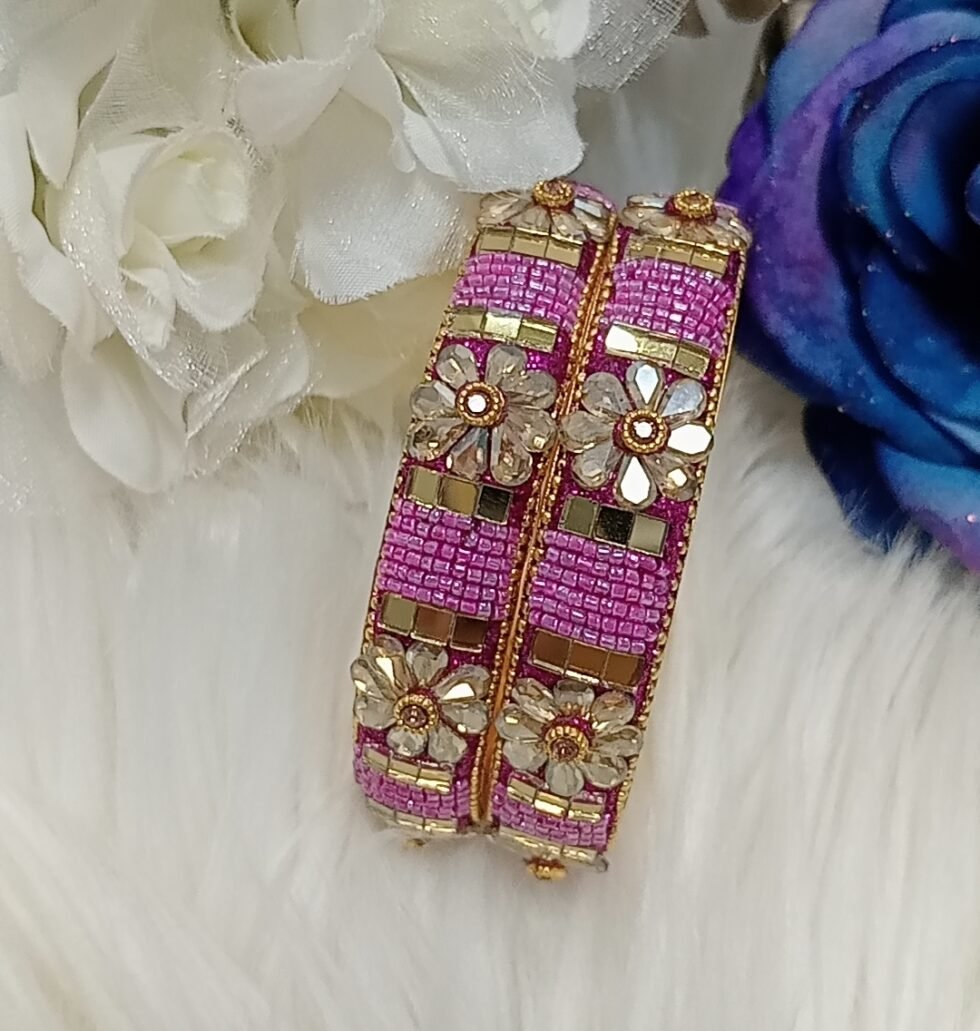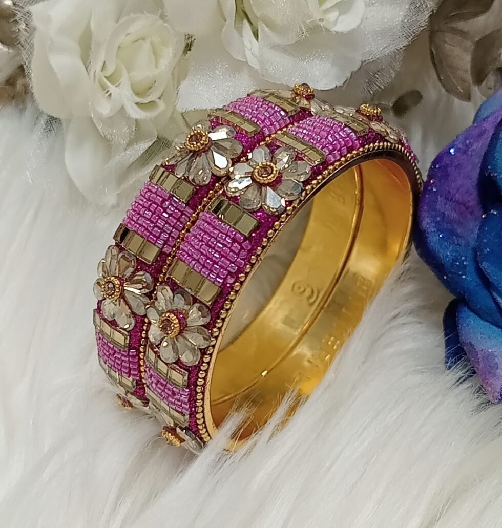 Barbie Pink Floral Beaded Indian Bangle 2pc Set