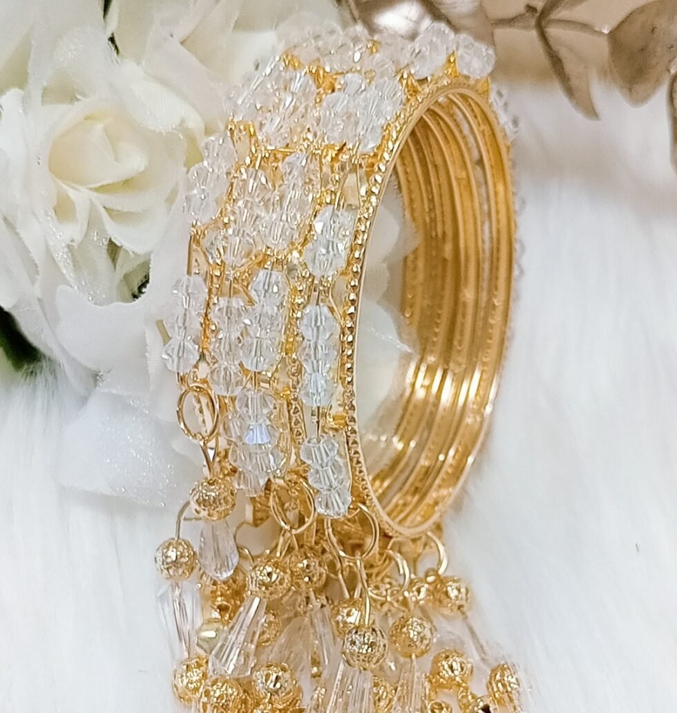 Crystal Beads Gold Latkan 4pc Bangle Set
