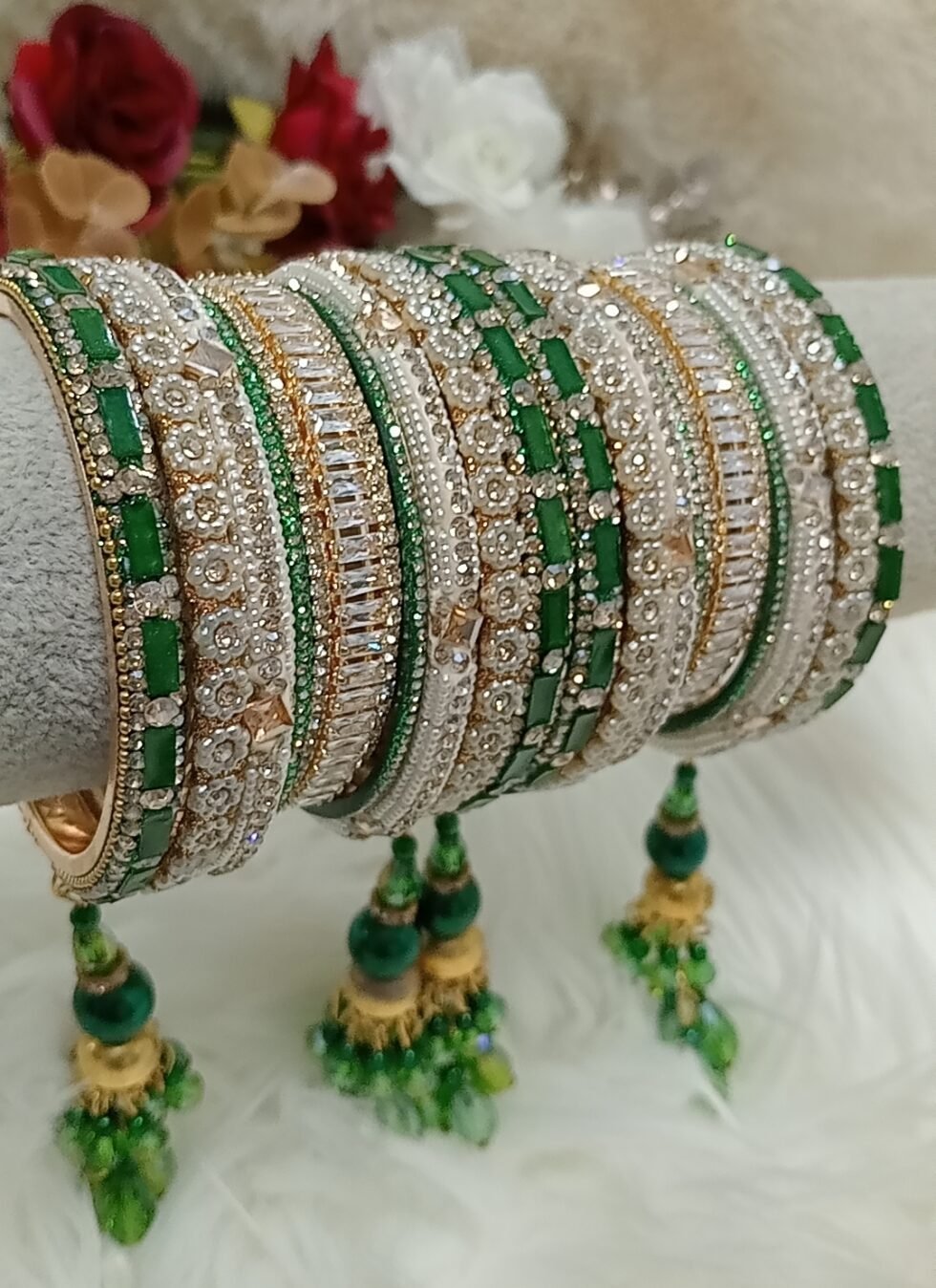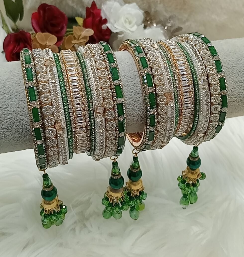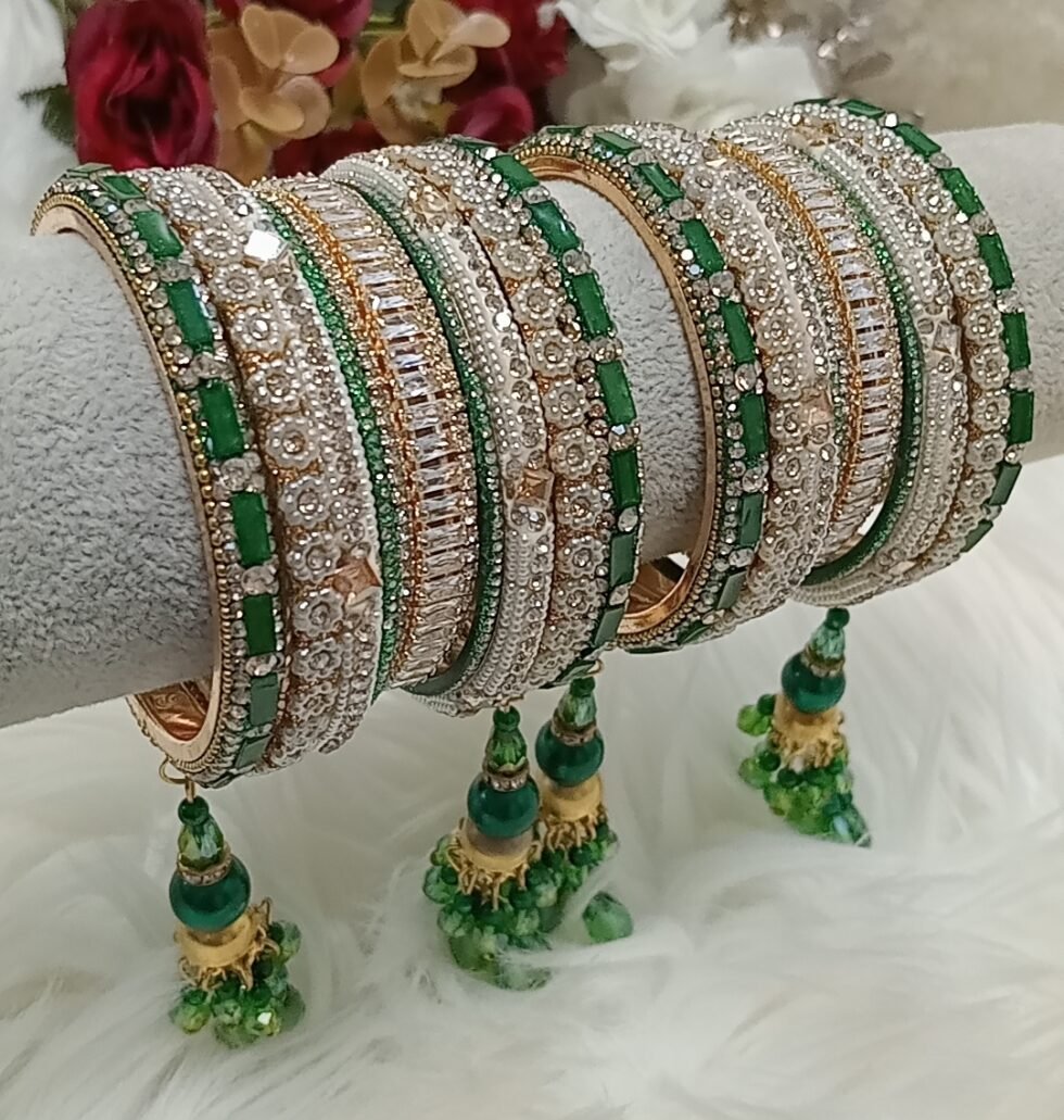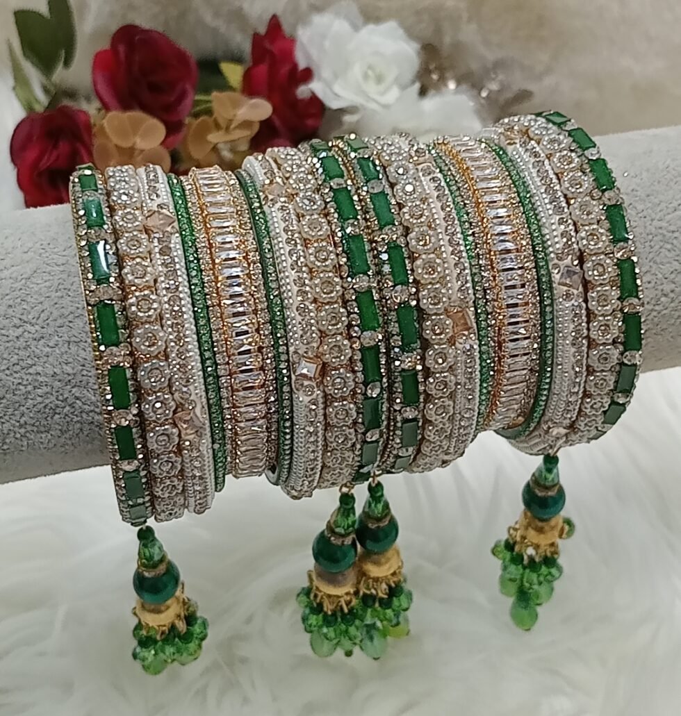 Customised Green Gold Indian Bangle Set