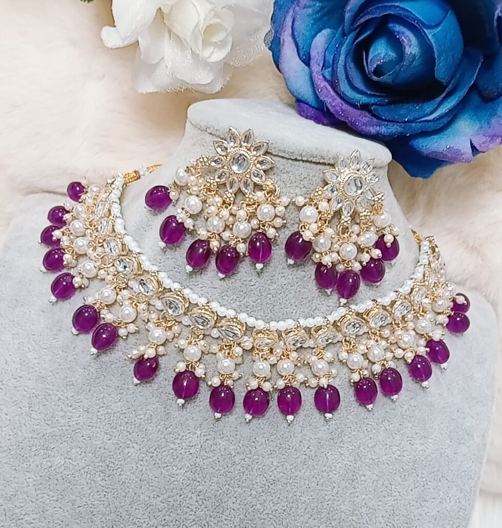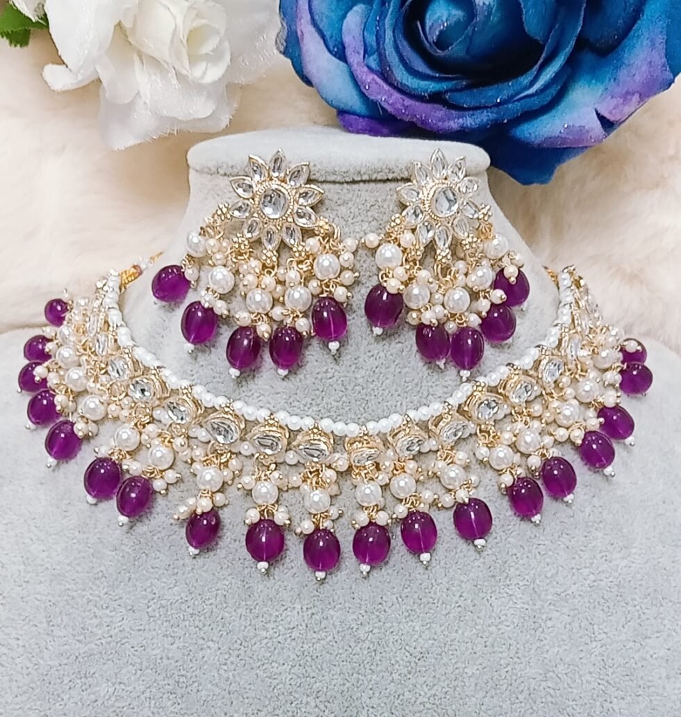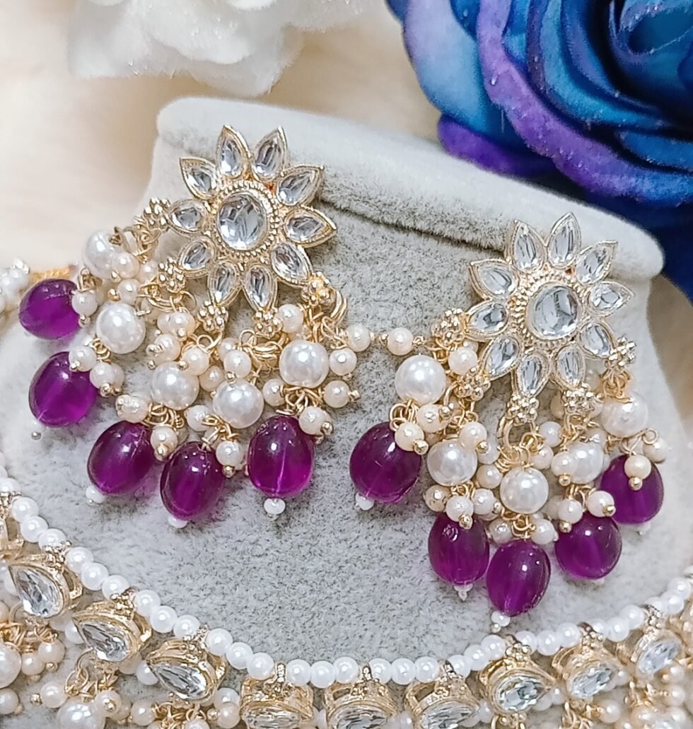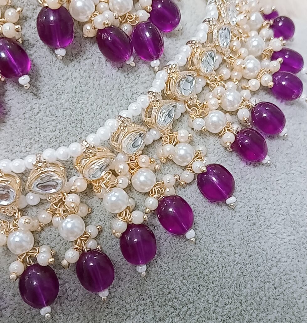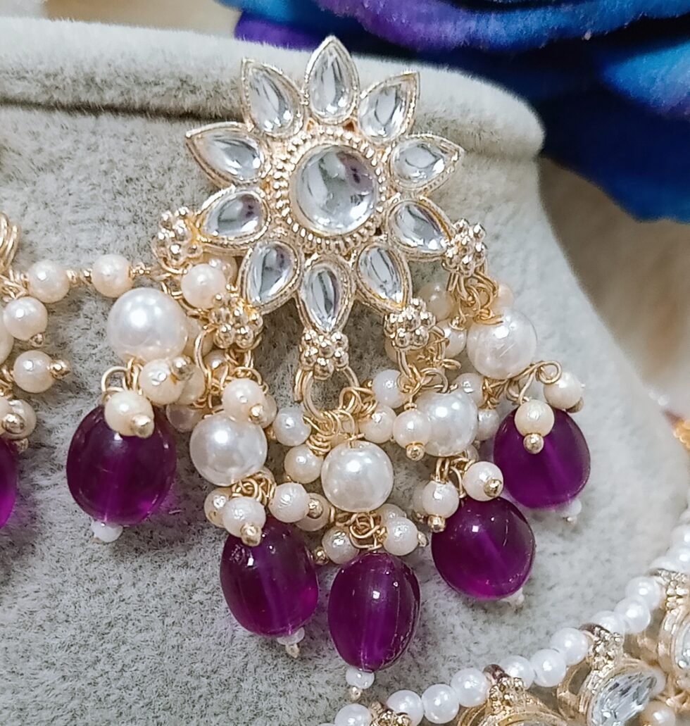 Dark Purple Pearl Indian Necklace Set with Earrings