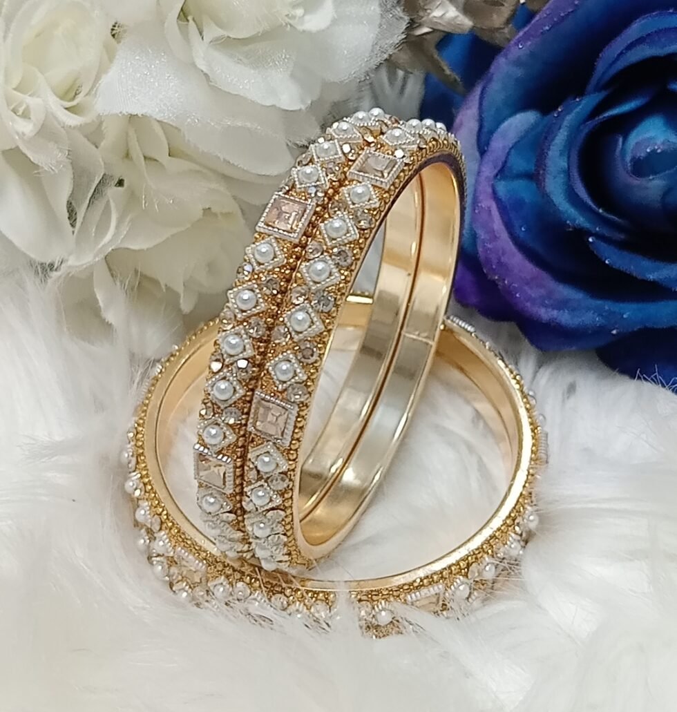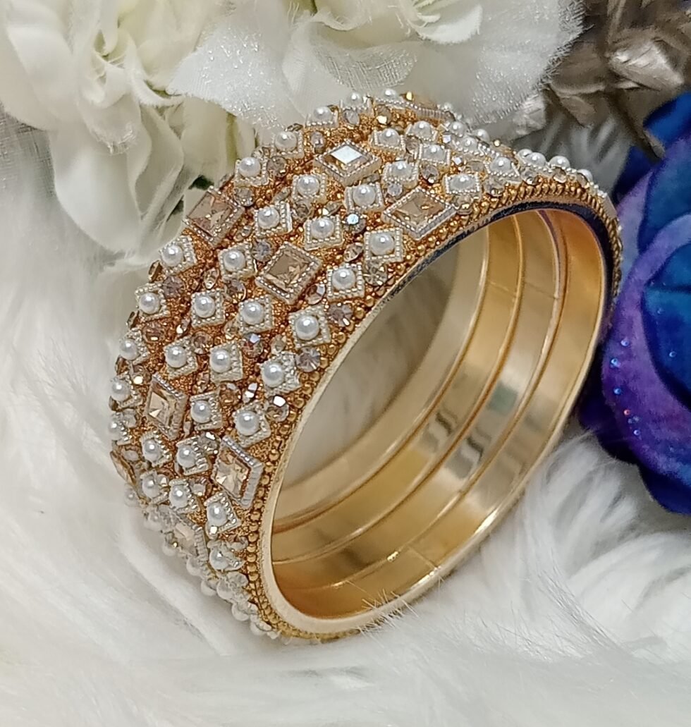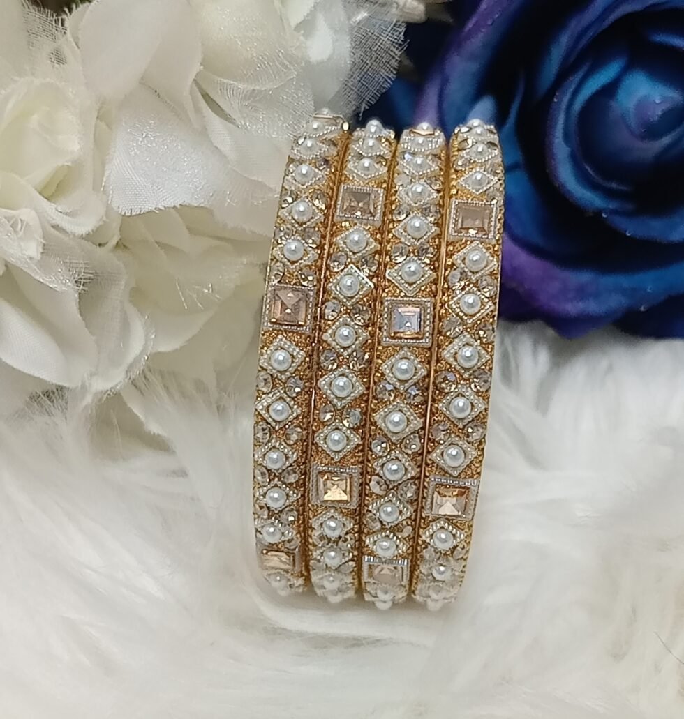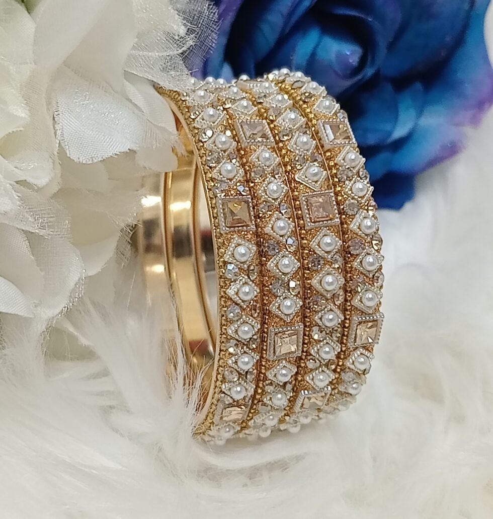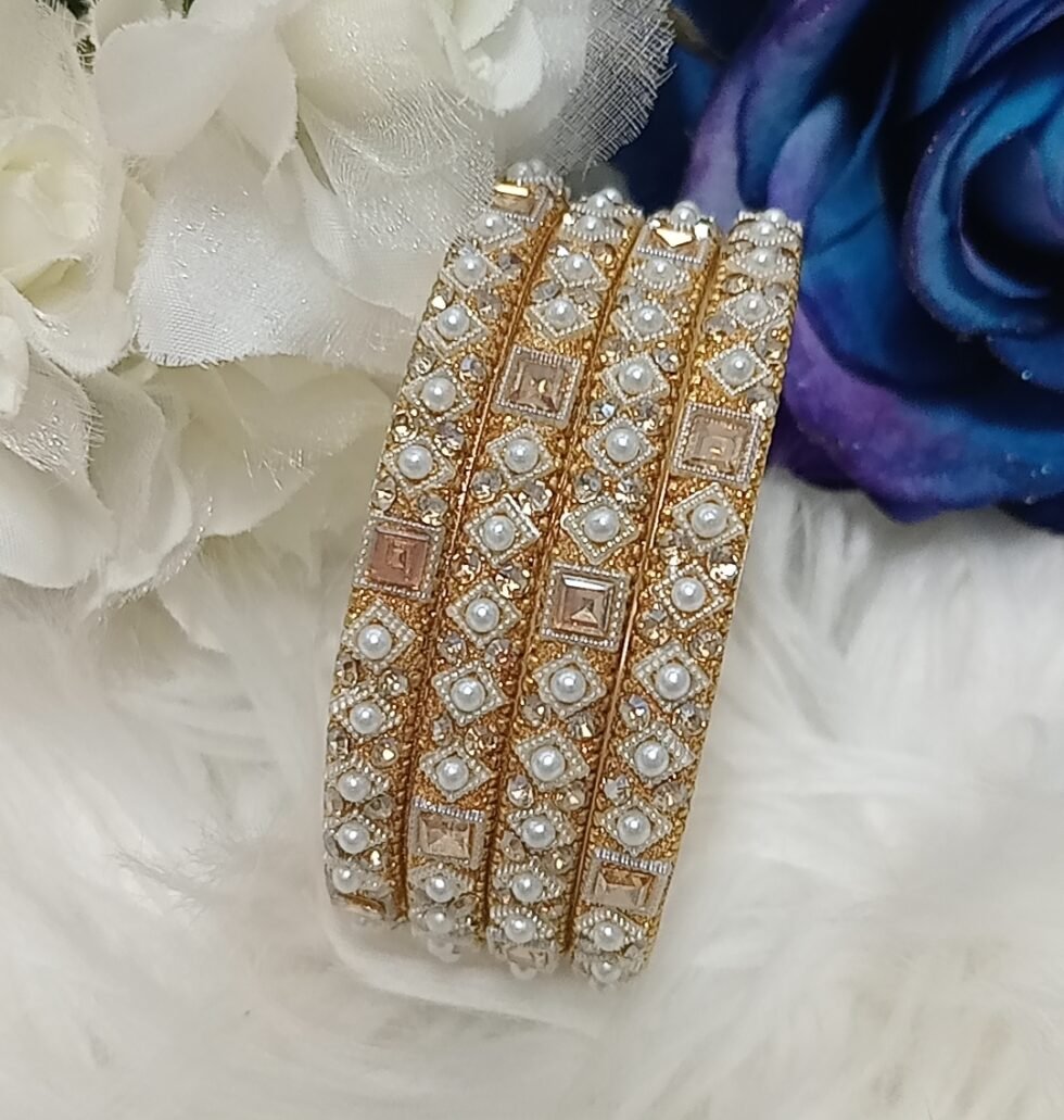 Designer Pearl Gold 4pc Indian Bangle Set