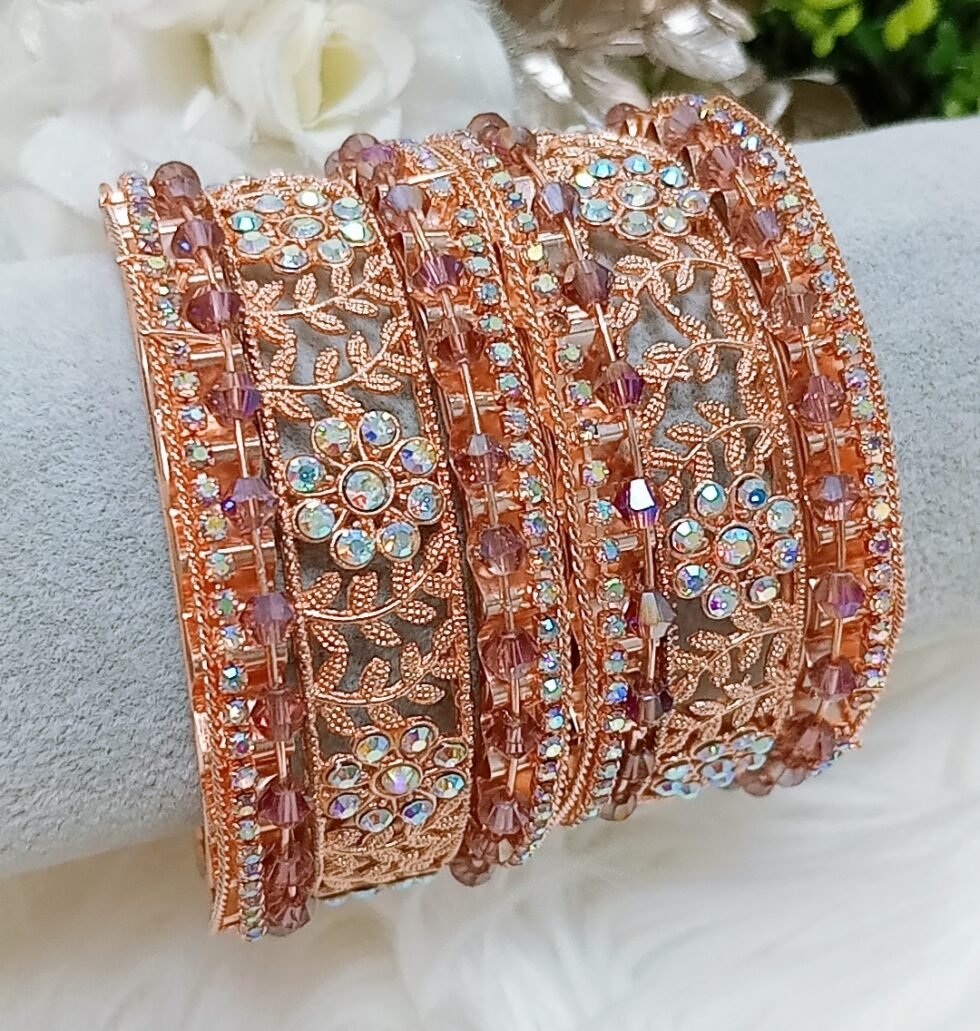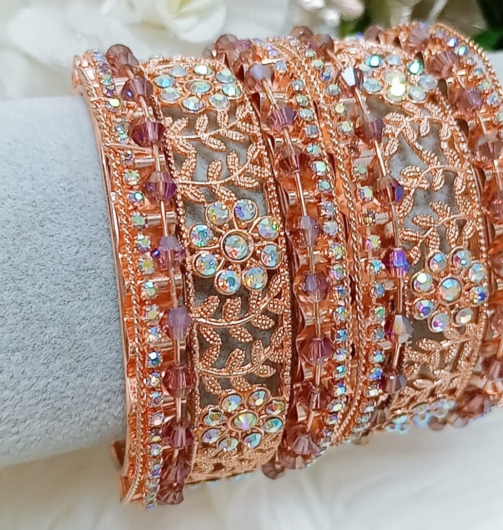 Dusty Purple Rose Gold Mix Match Indian Bangle Set