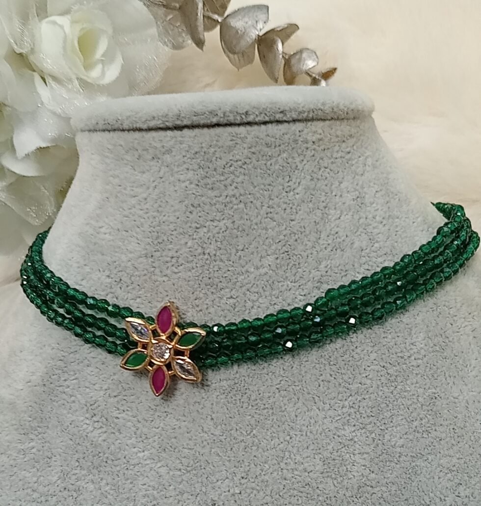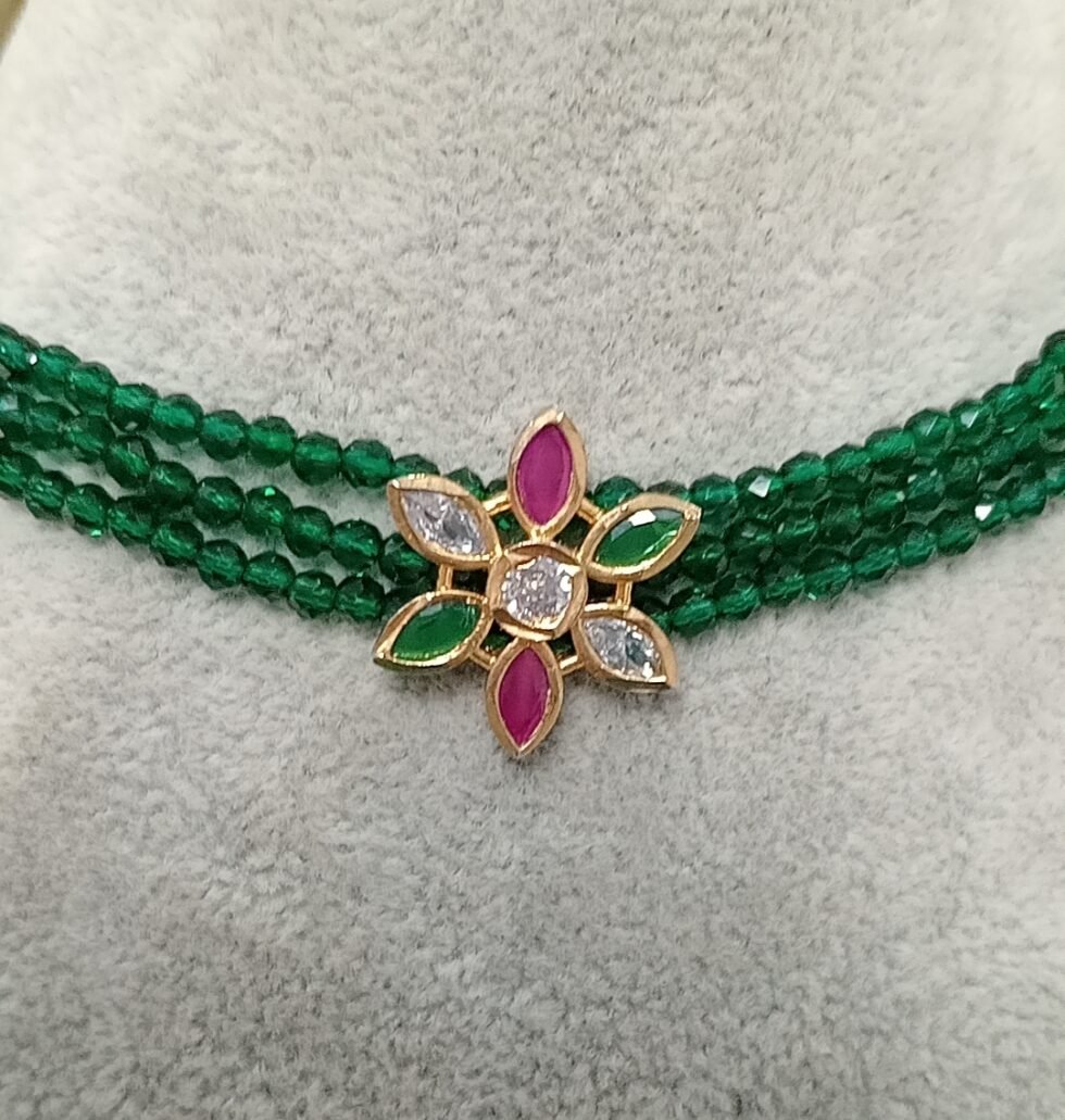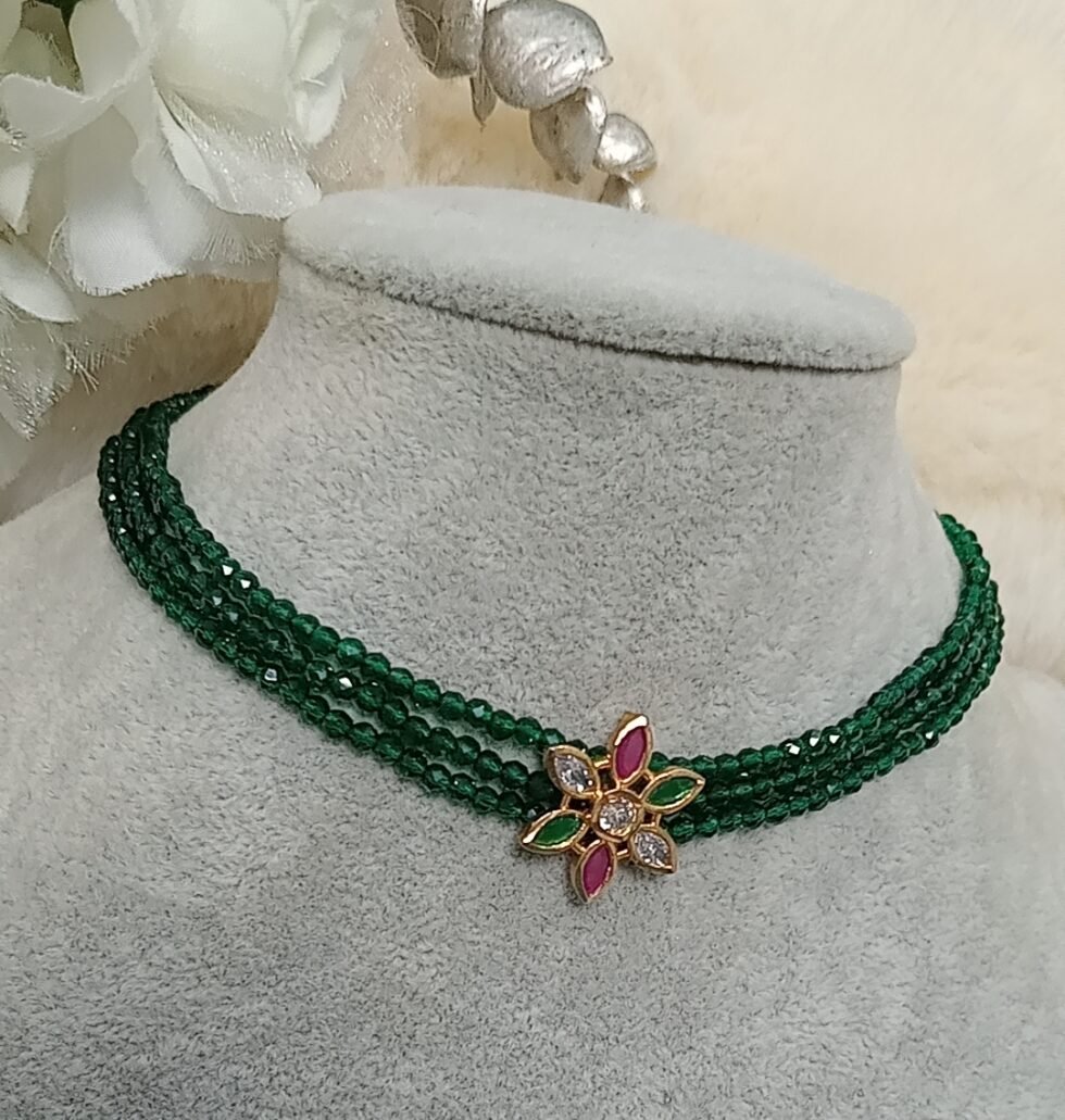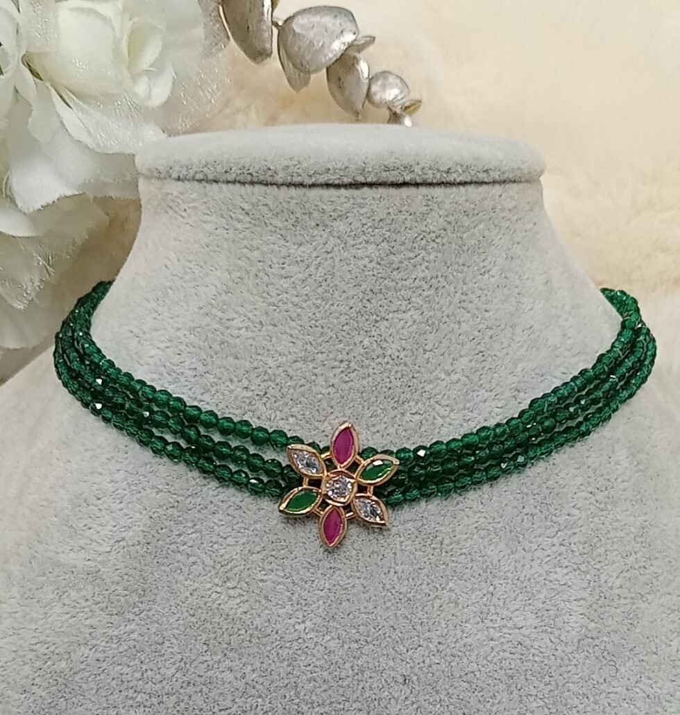 Emerald Green Beaded AD Floral Choker