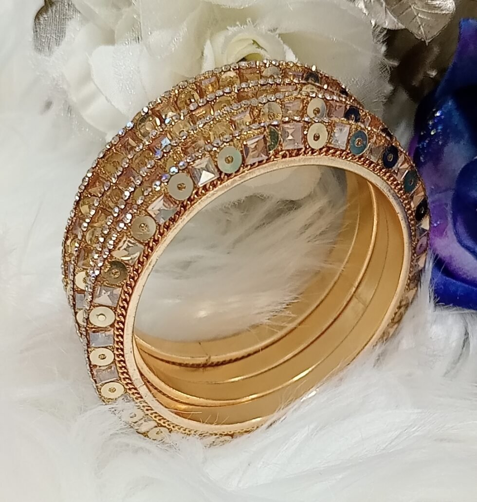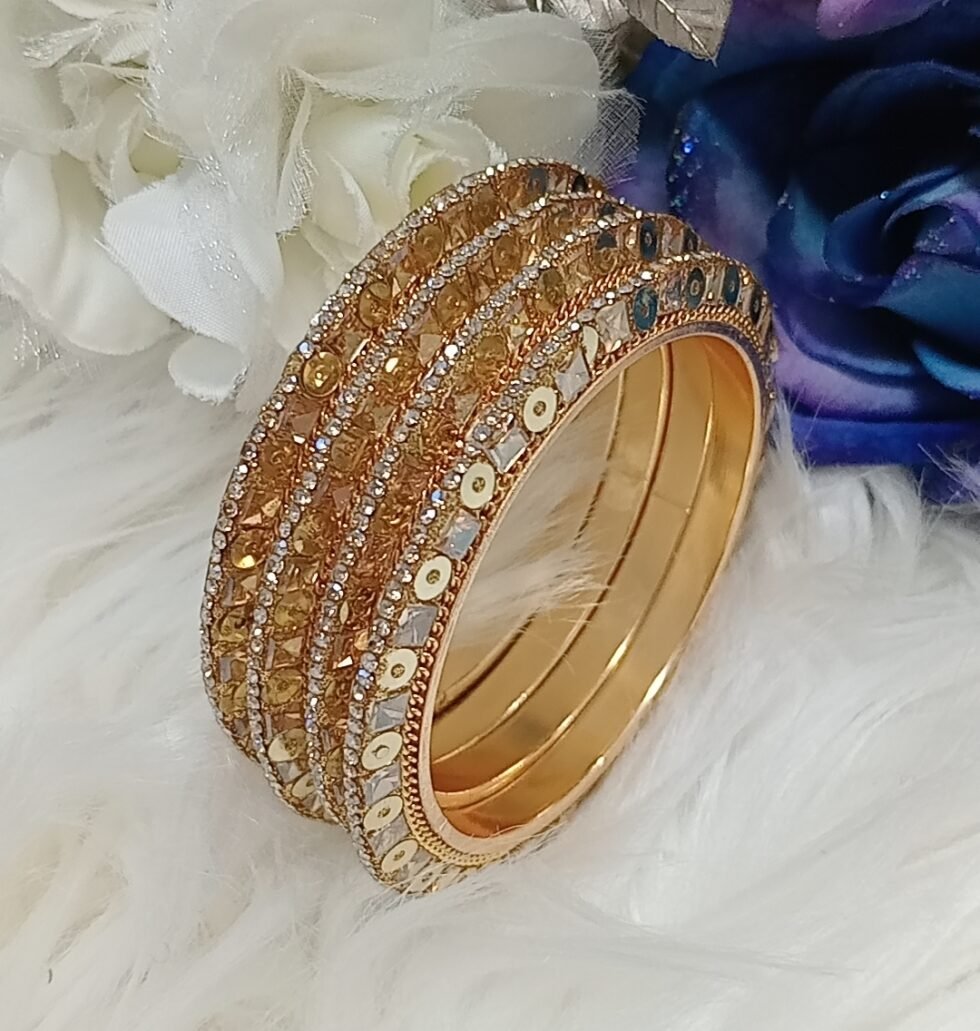 Exclusive Dazzling Sequin Gold 4pc Indian Bangle Set