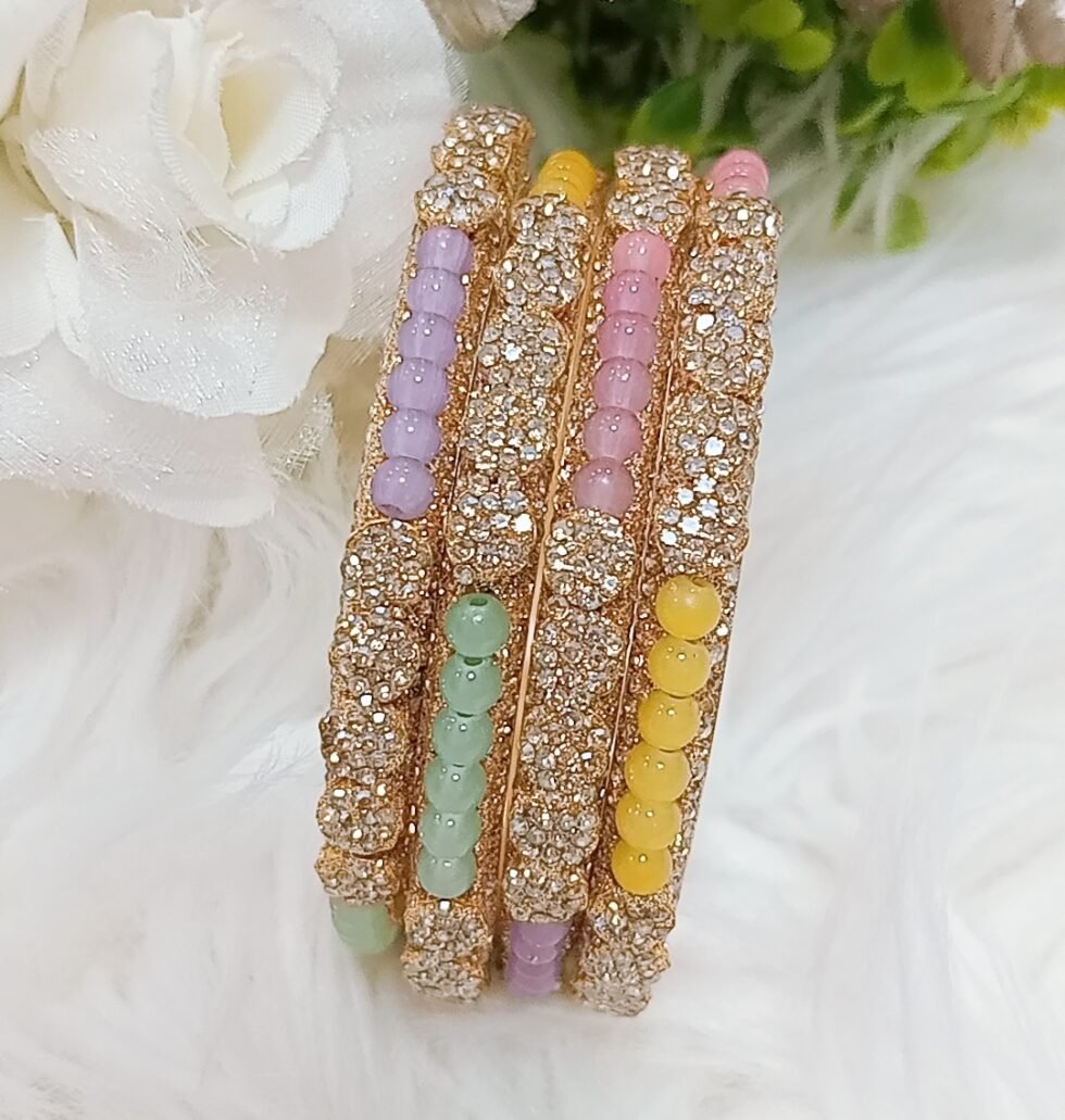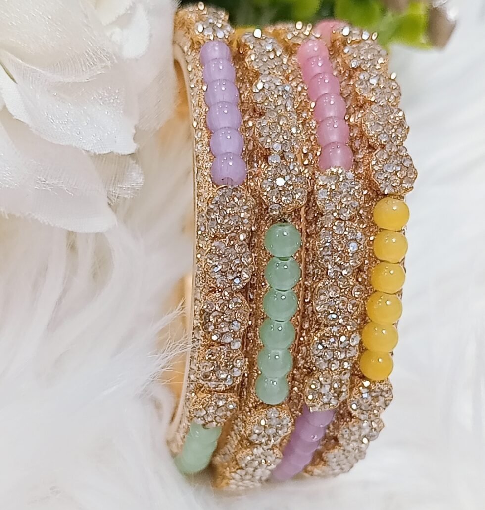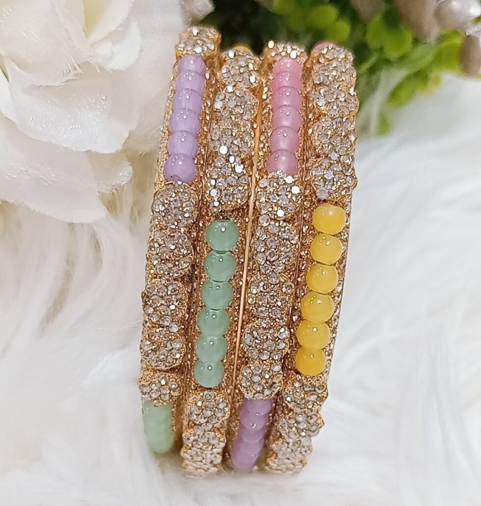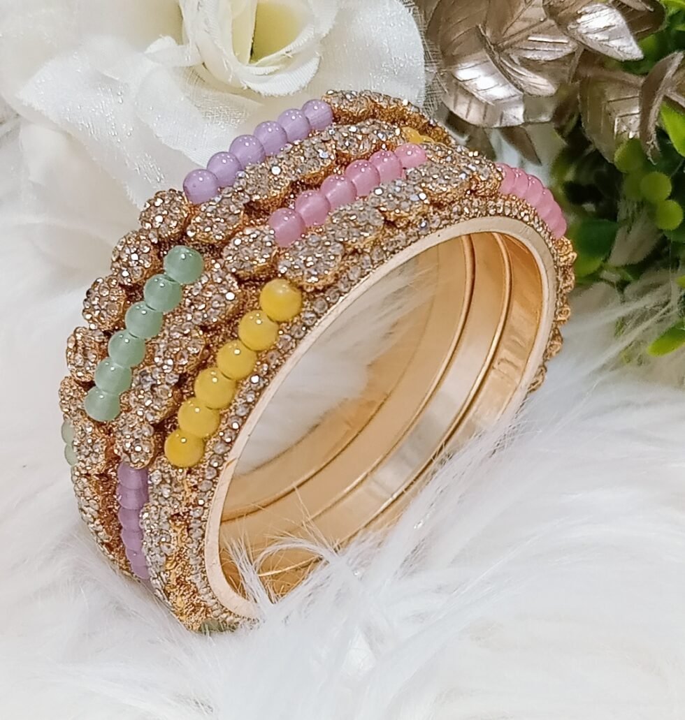 Exclusive Pastel Beaded Floral 4pc Indian Gold Bangle Set