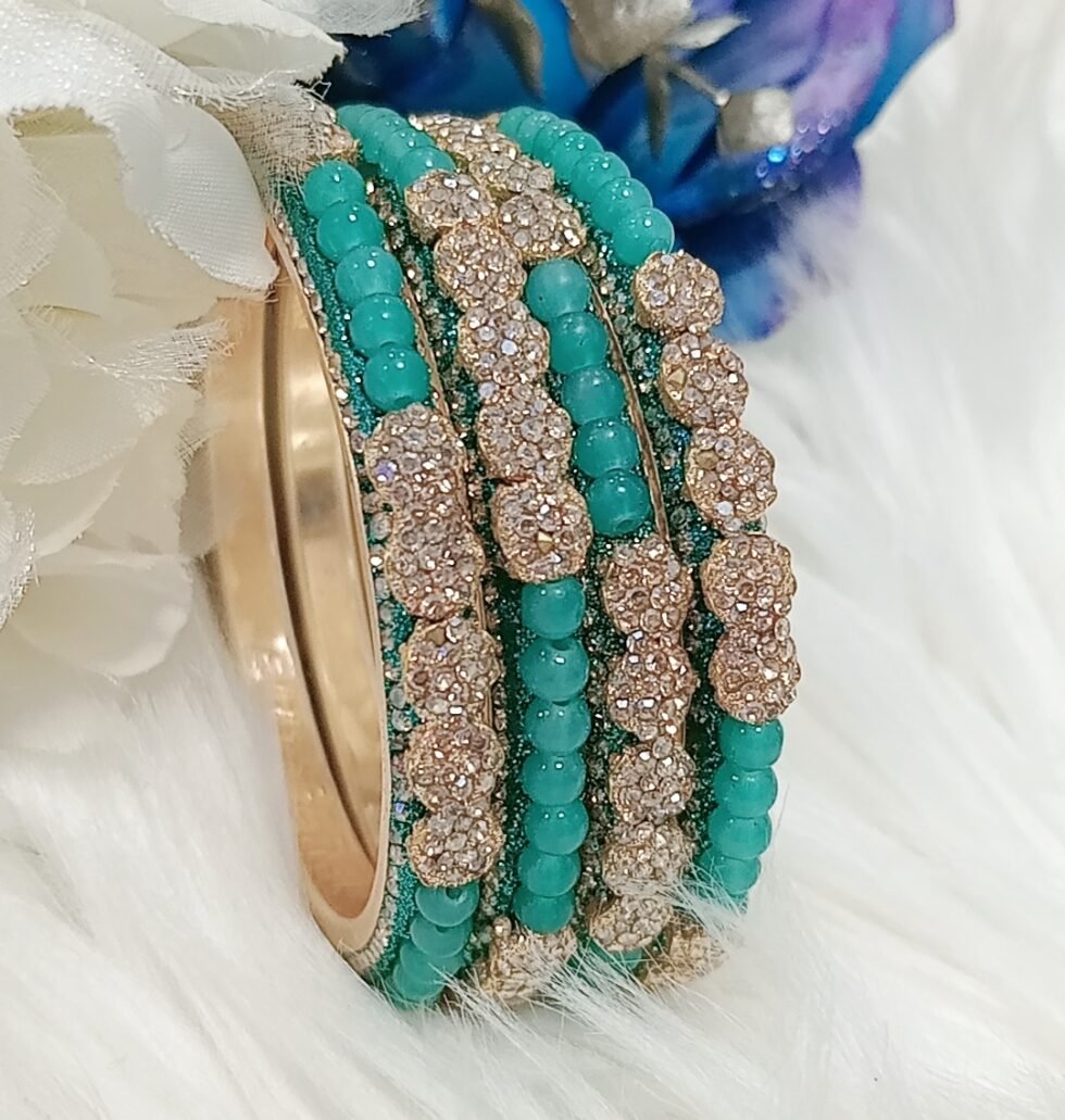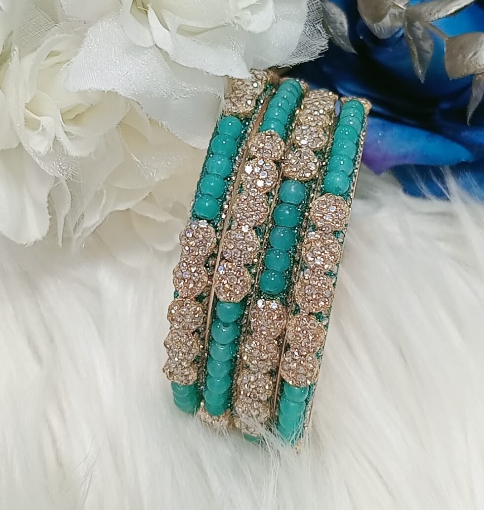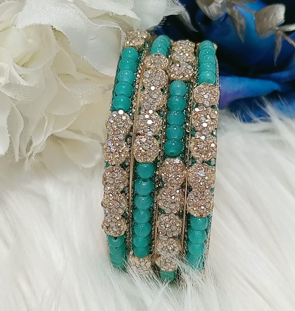 Exclusive Turquoise Beaded Floral 4pc Indian Bangle Set
