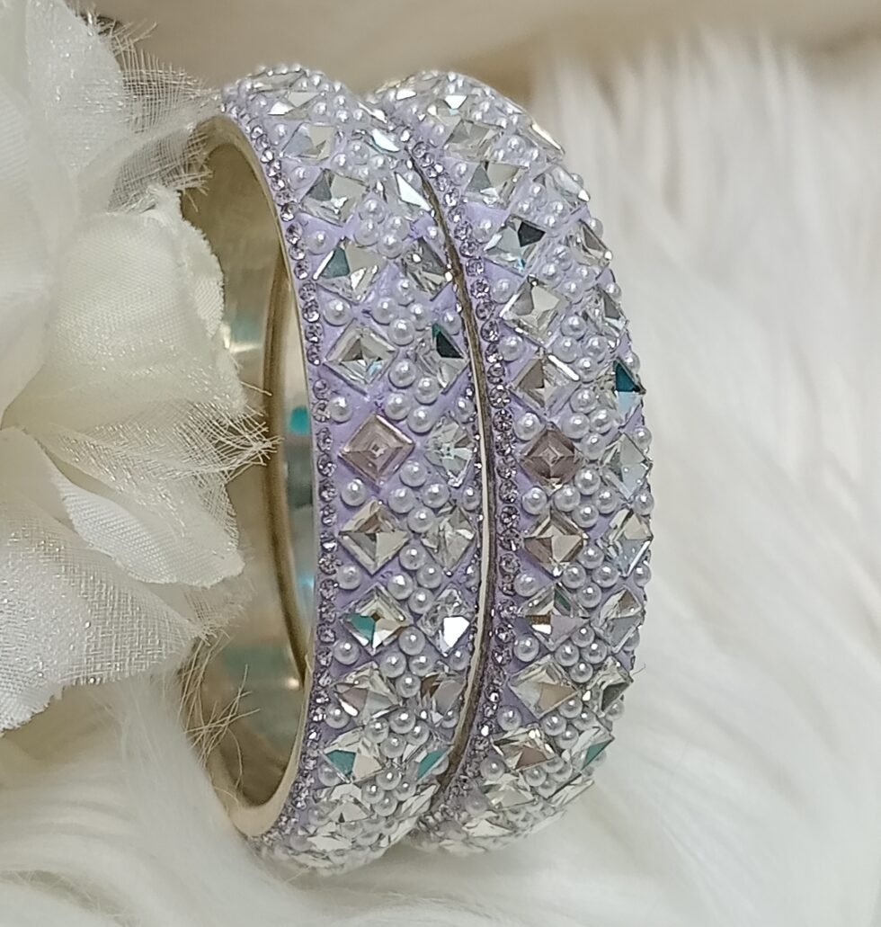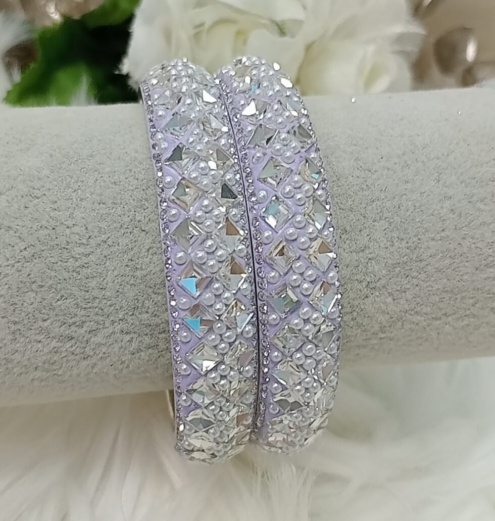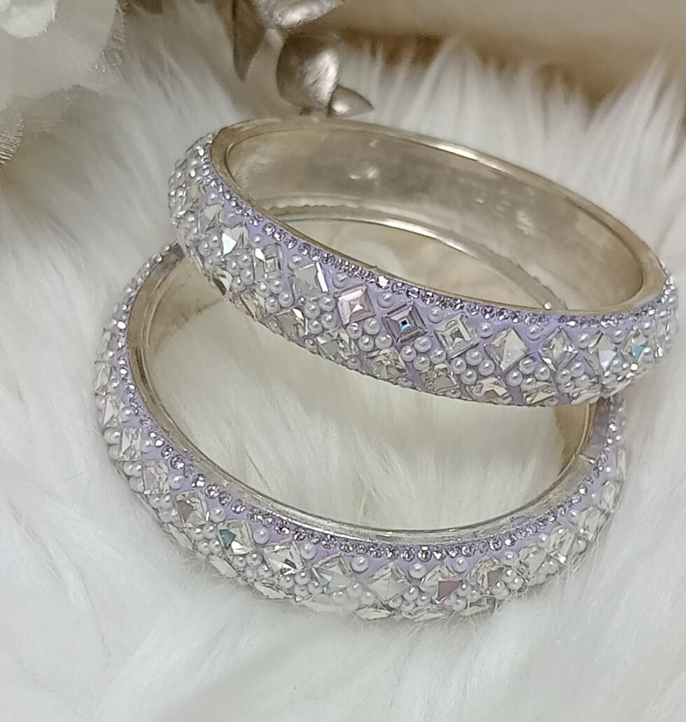 Light Purple Pearl Silver Designer 2pc Bangle Set
