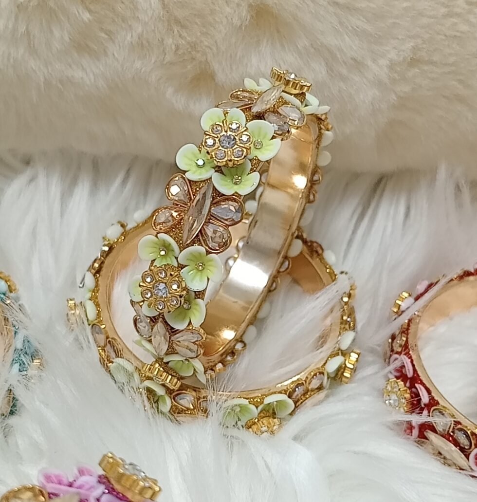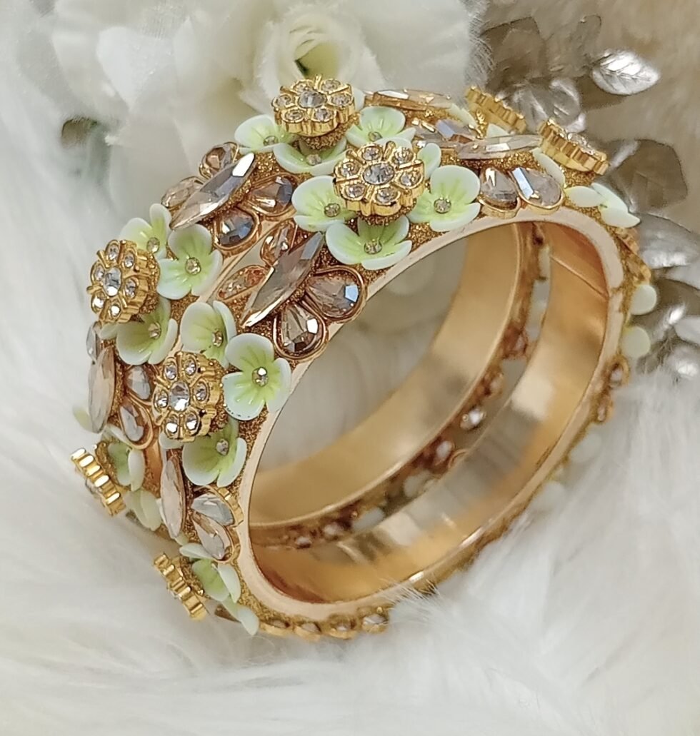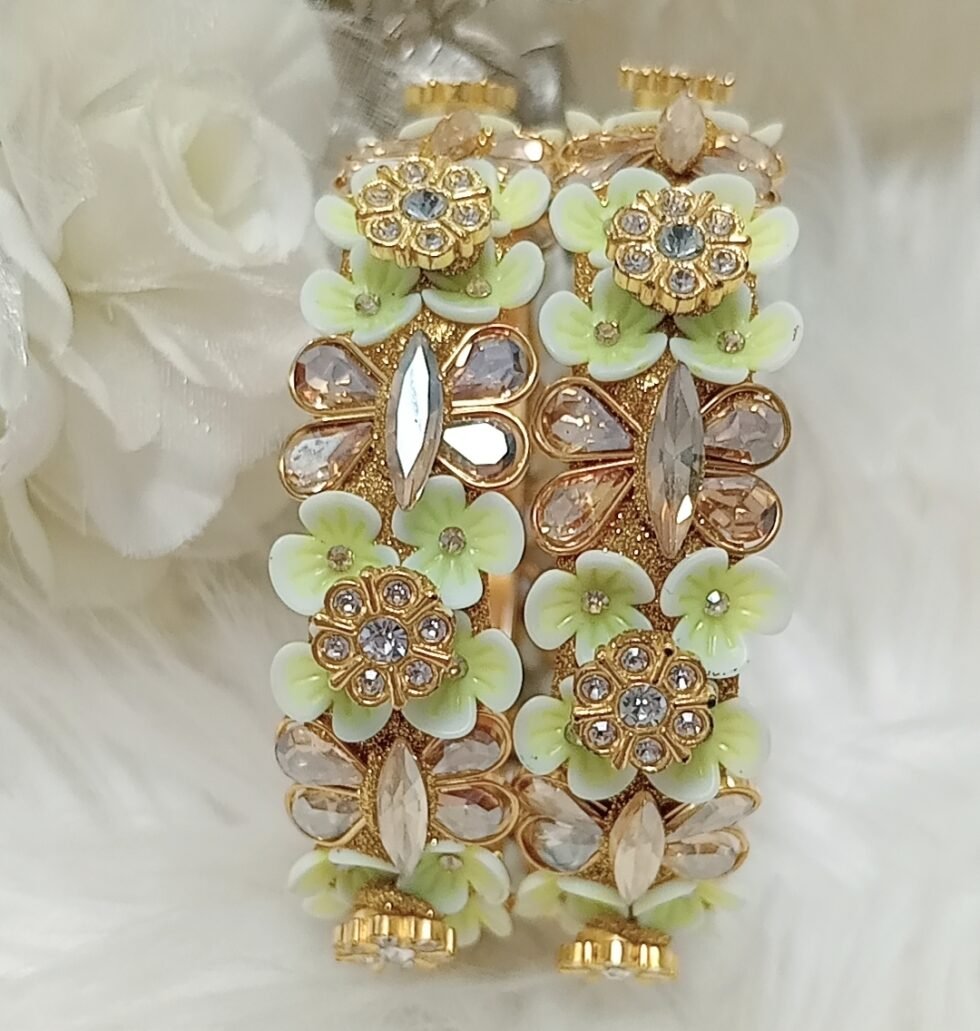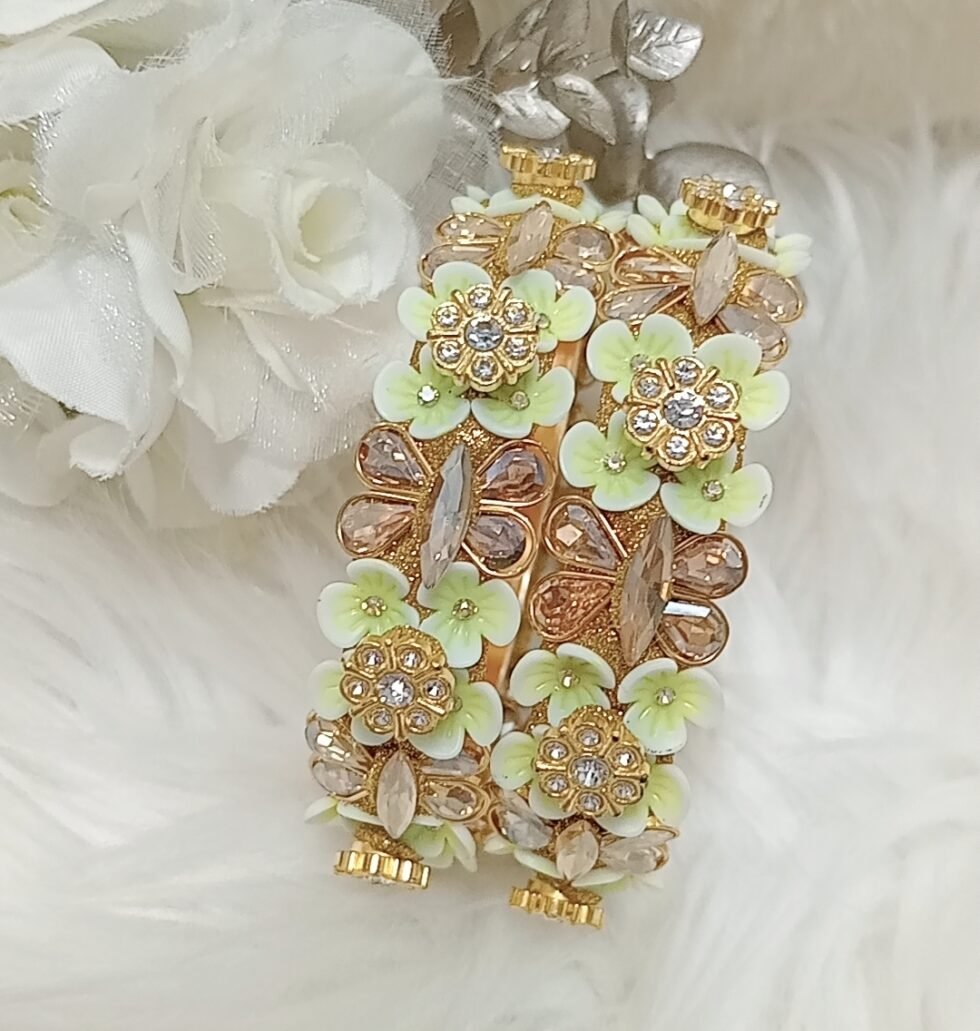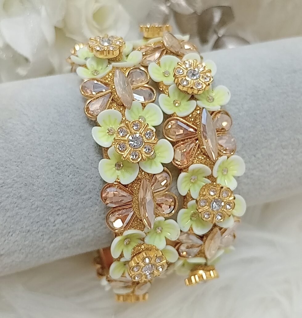 Light Yellow Butterfly Floral Designer 2pc Bangle Set