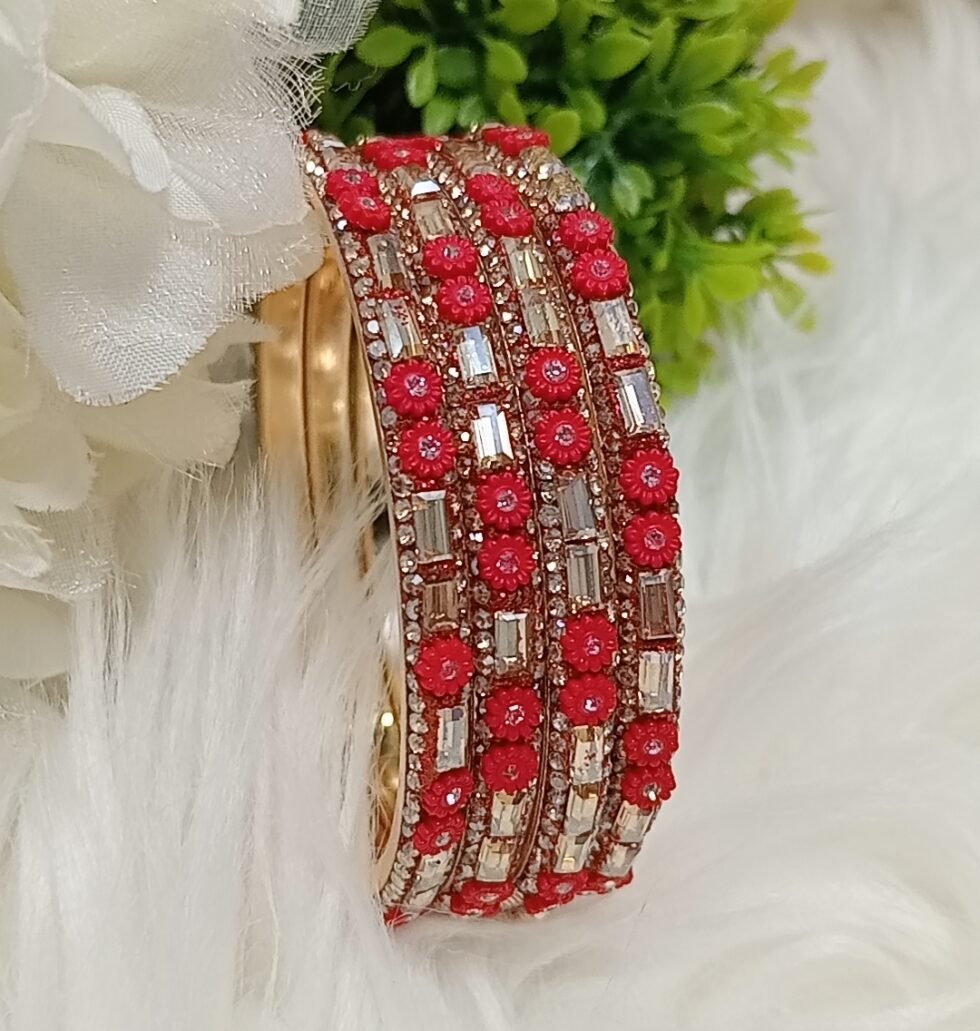 Mini Flowers Red Gold 4pc Premium Indian Bangle Set