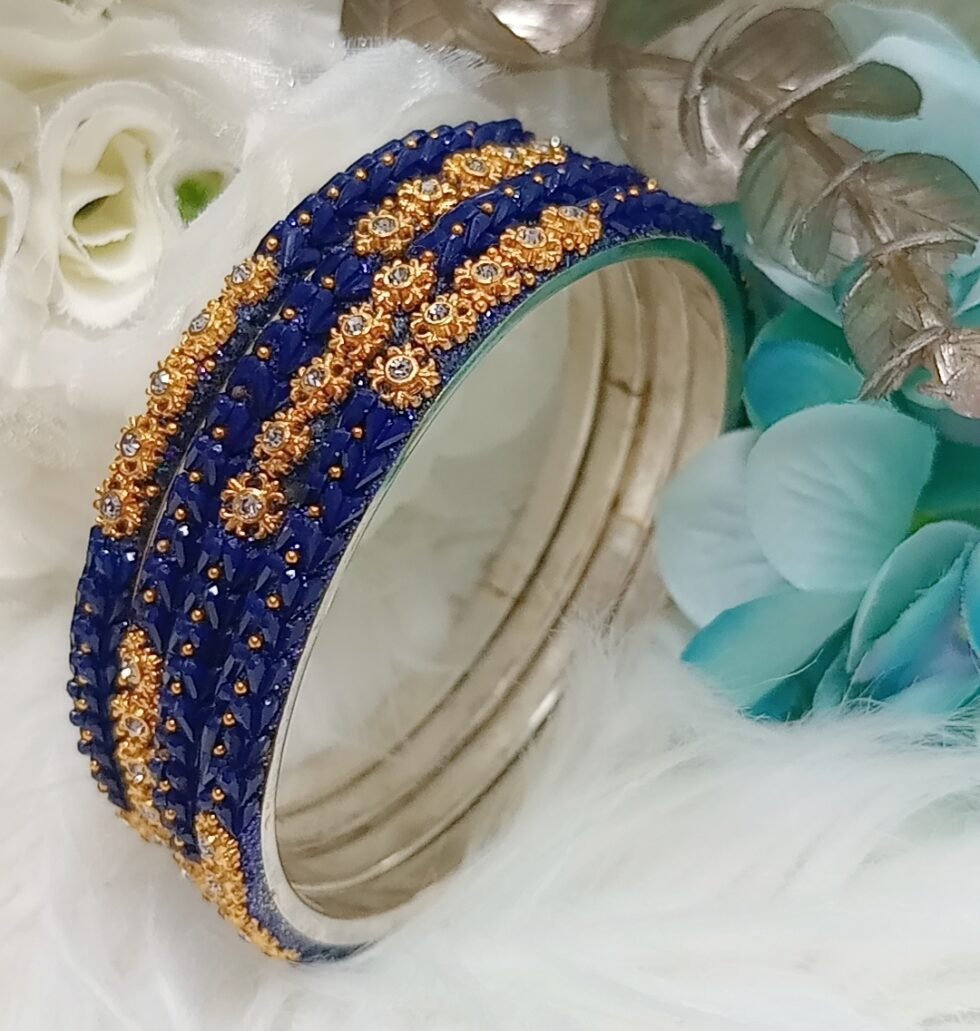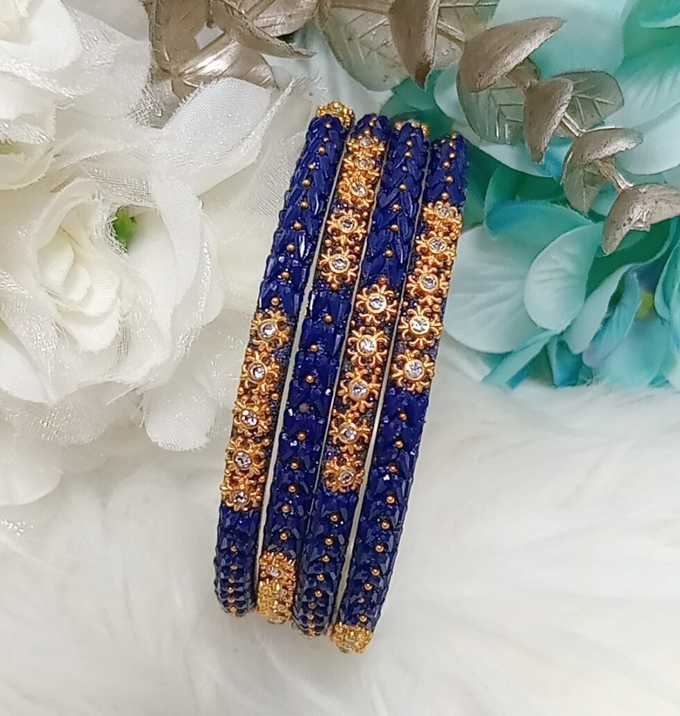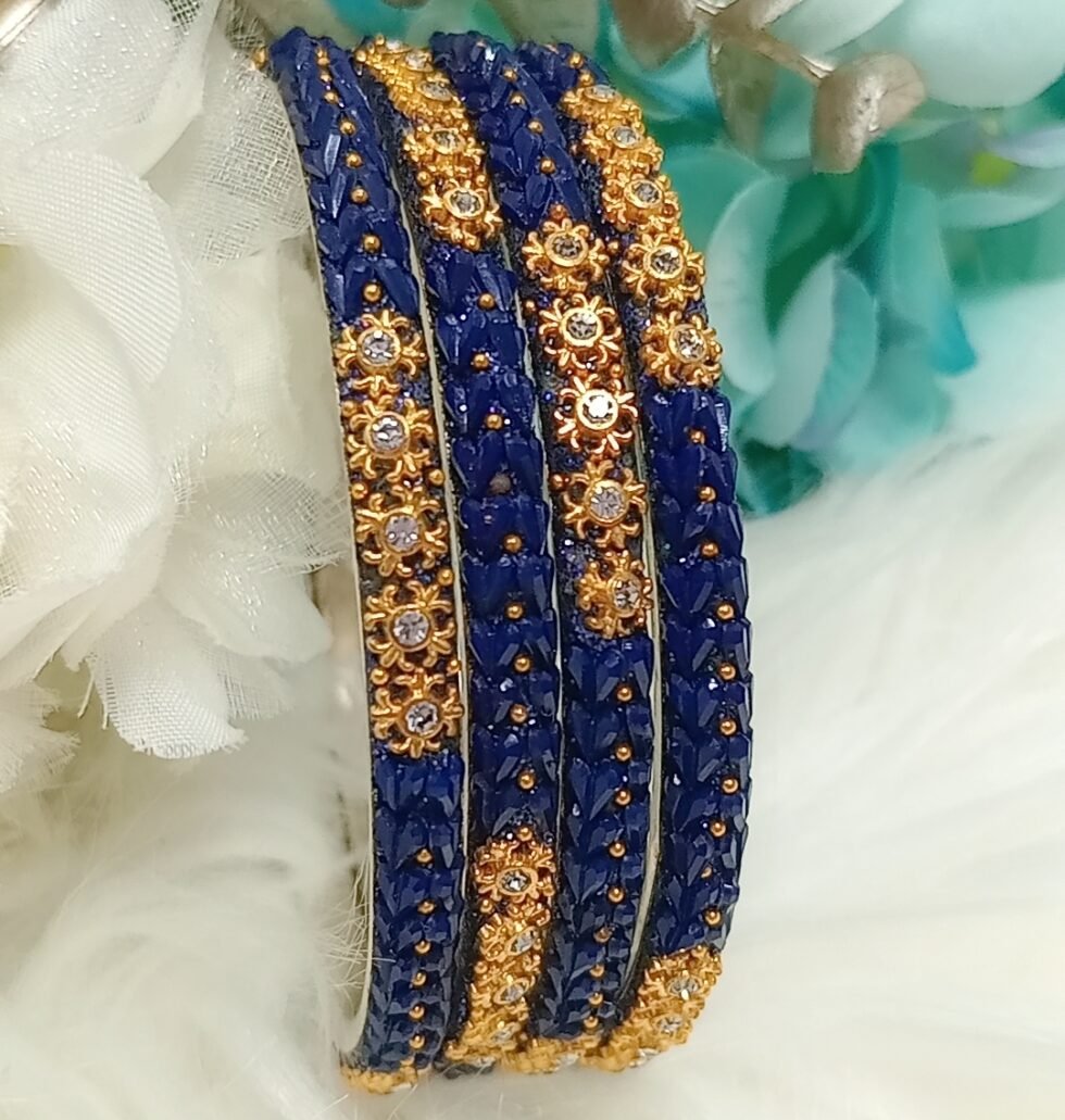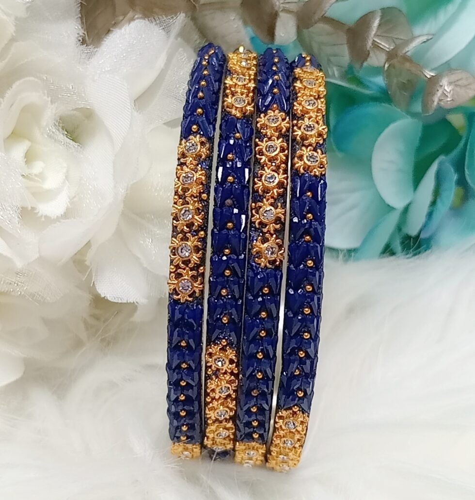 Mini Hearts Navy Blue Gold 4pc Bangle Set
