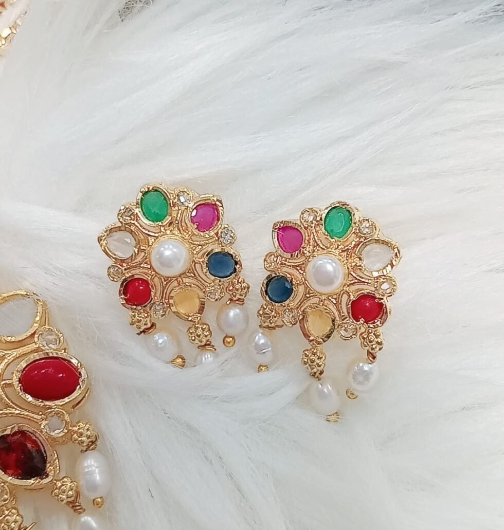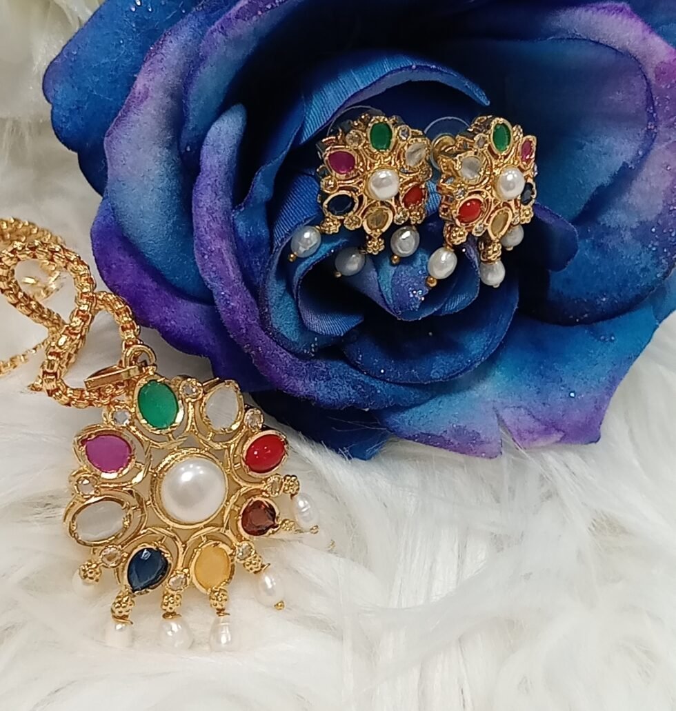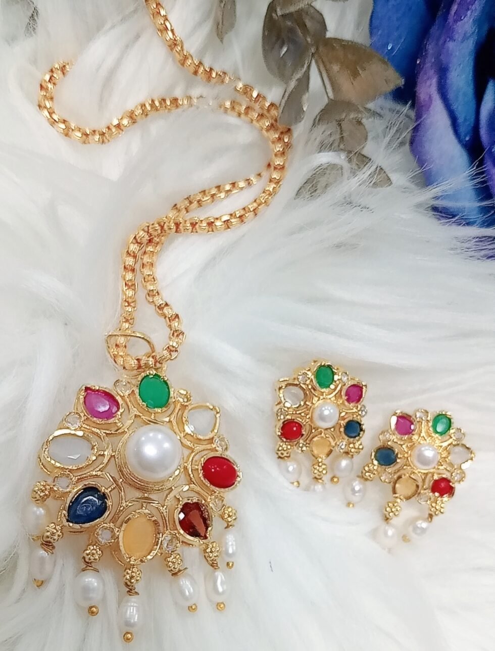 Multicolor Fresh Water Pearl Indian Pendant Necklace Set with Earrings