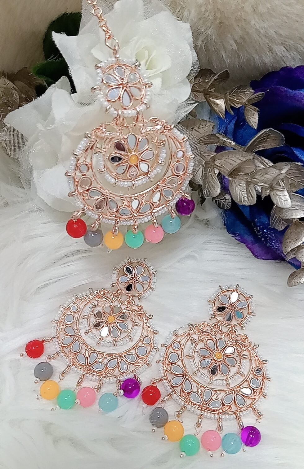 Multicolor Indian Chandbali Earring and Tikka Set