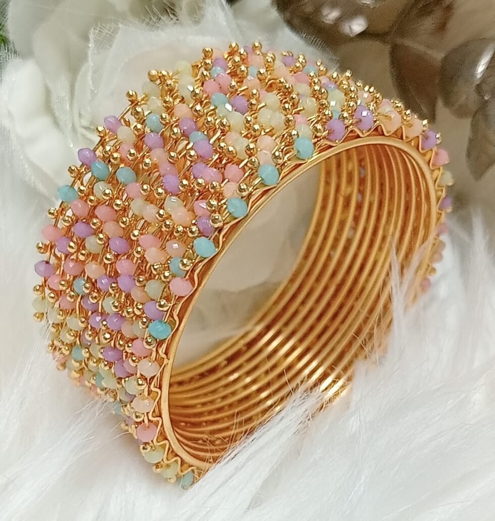 Exclusive Pastel Beaded Floral 4pc Indian Gold Bangle Set