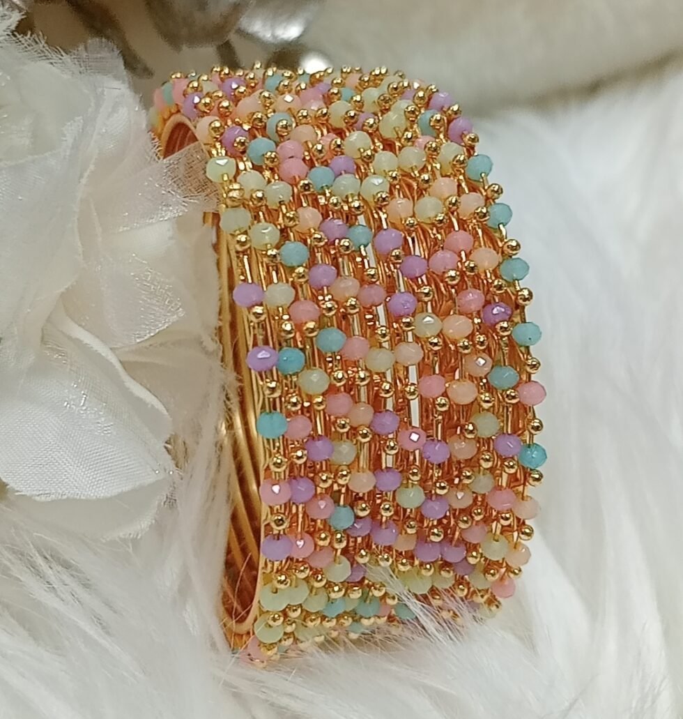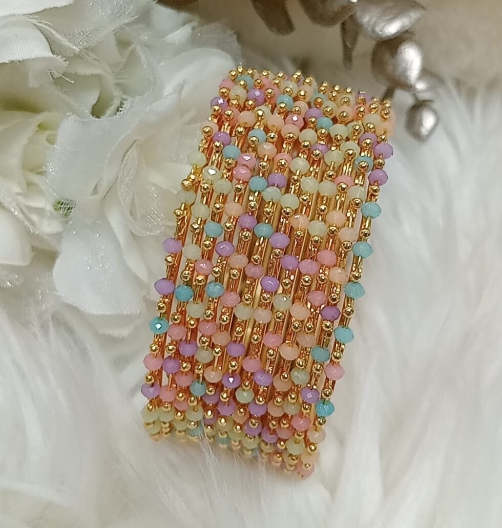 Multicolor Pastel Crystal Beaded 12pc Gold Base Indian Bangle Set