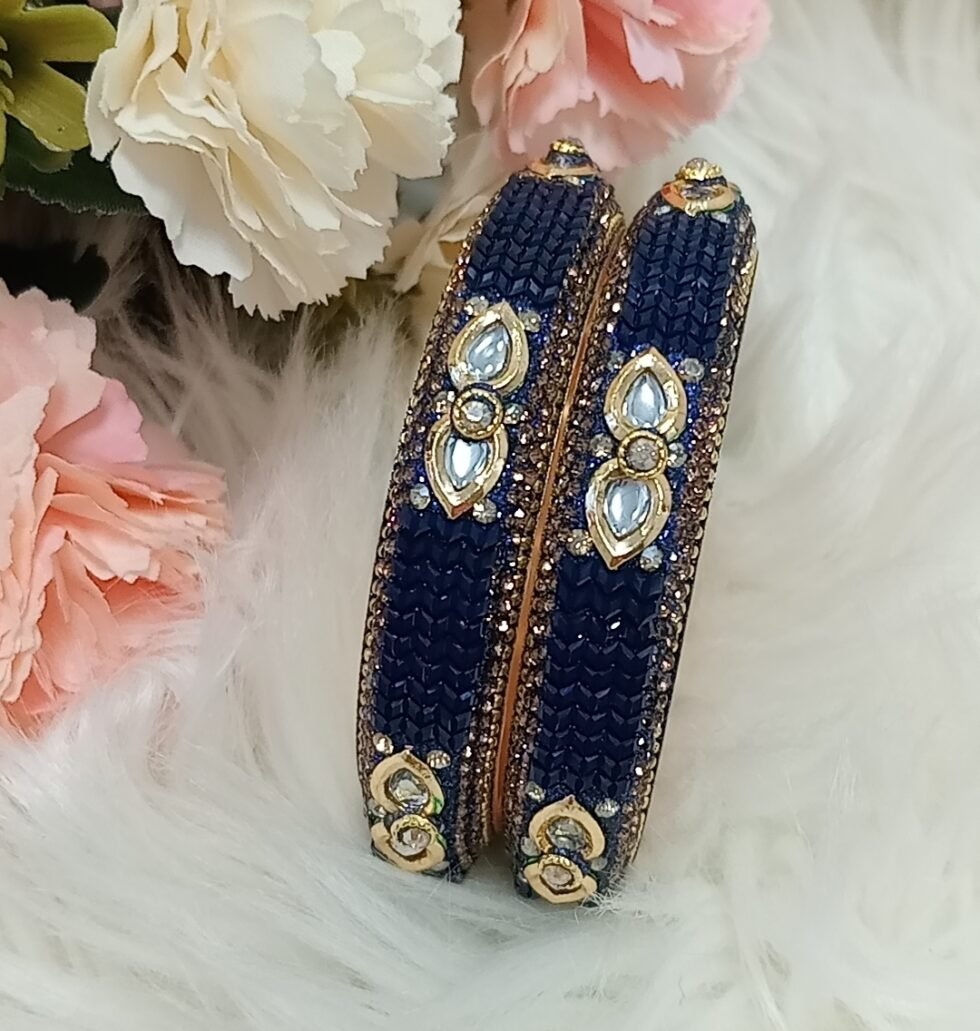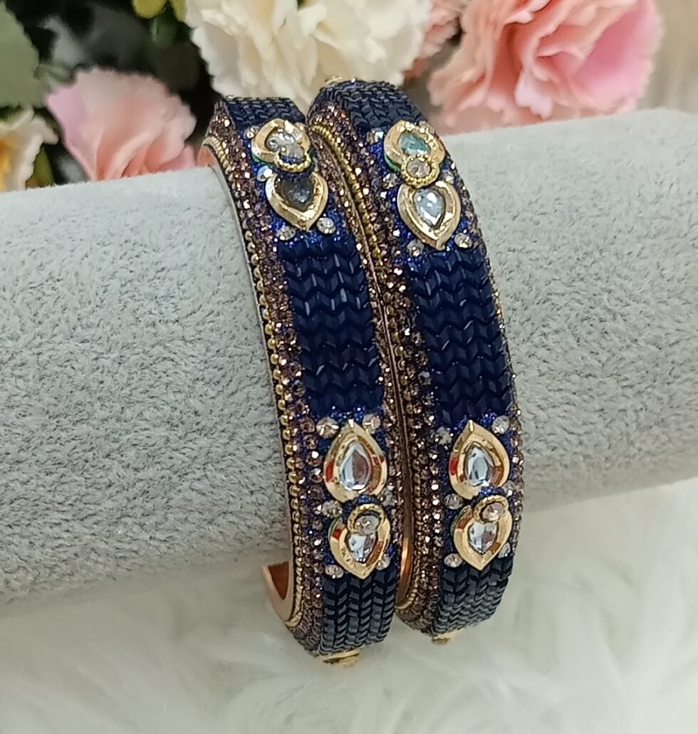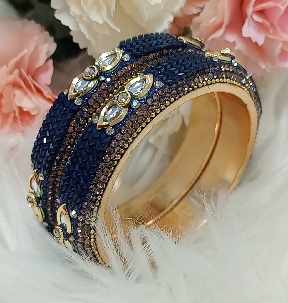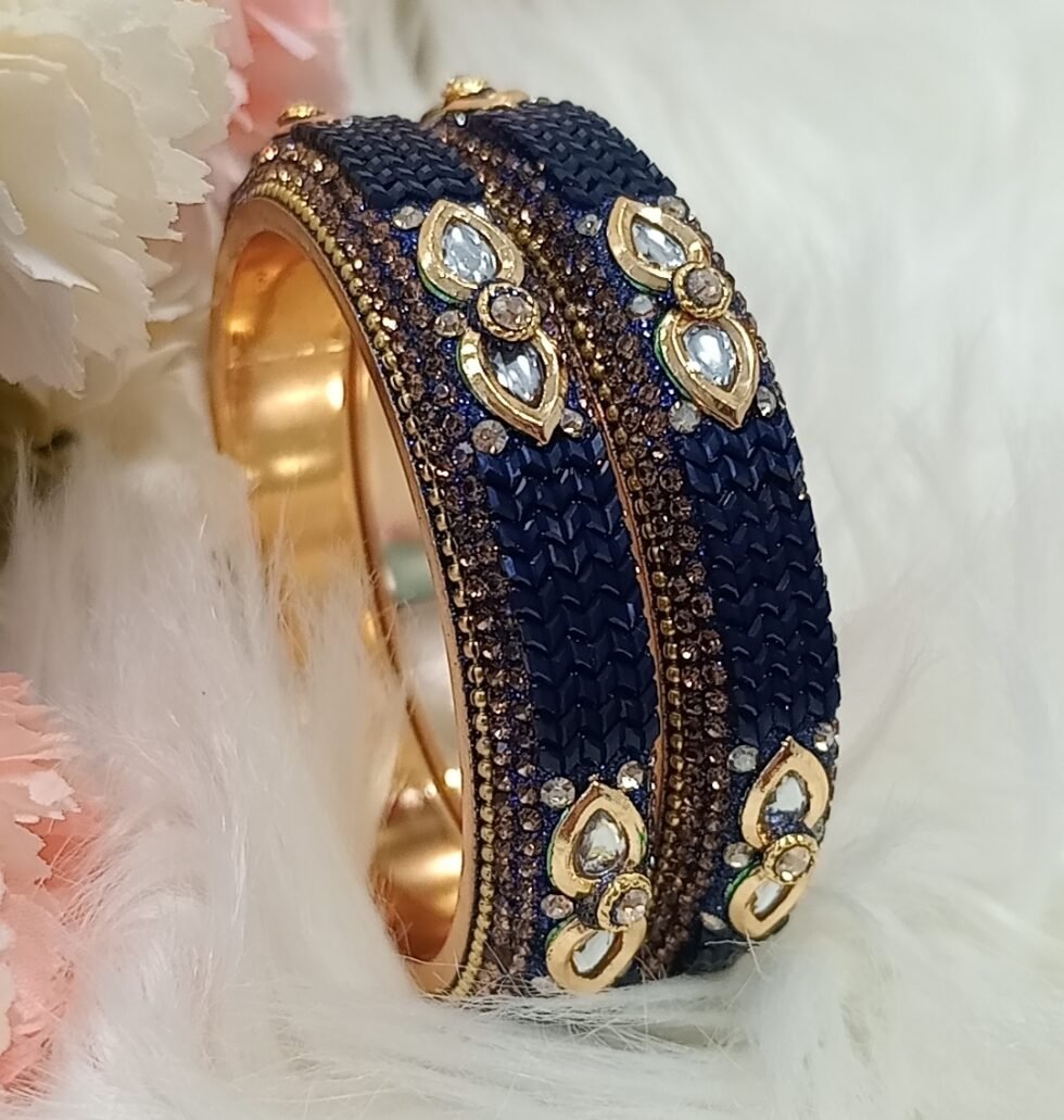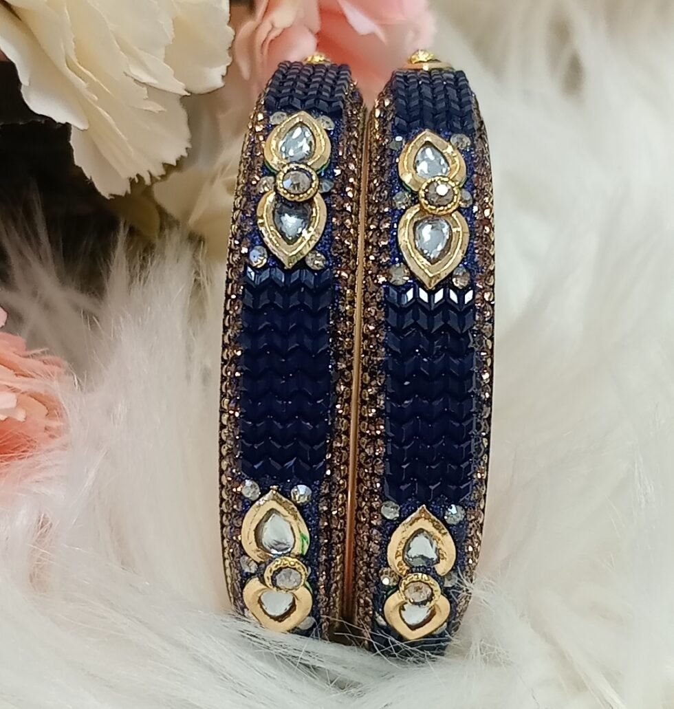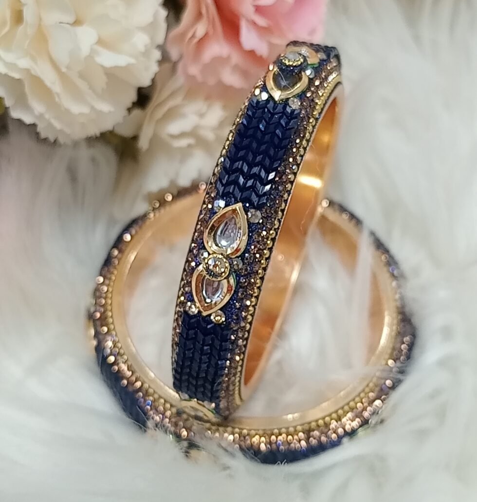 Navy Blue Gold 2pc Indian Bangle Set