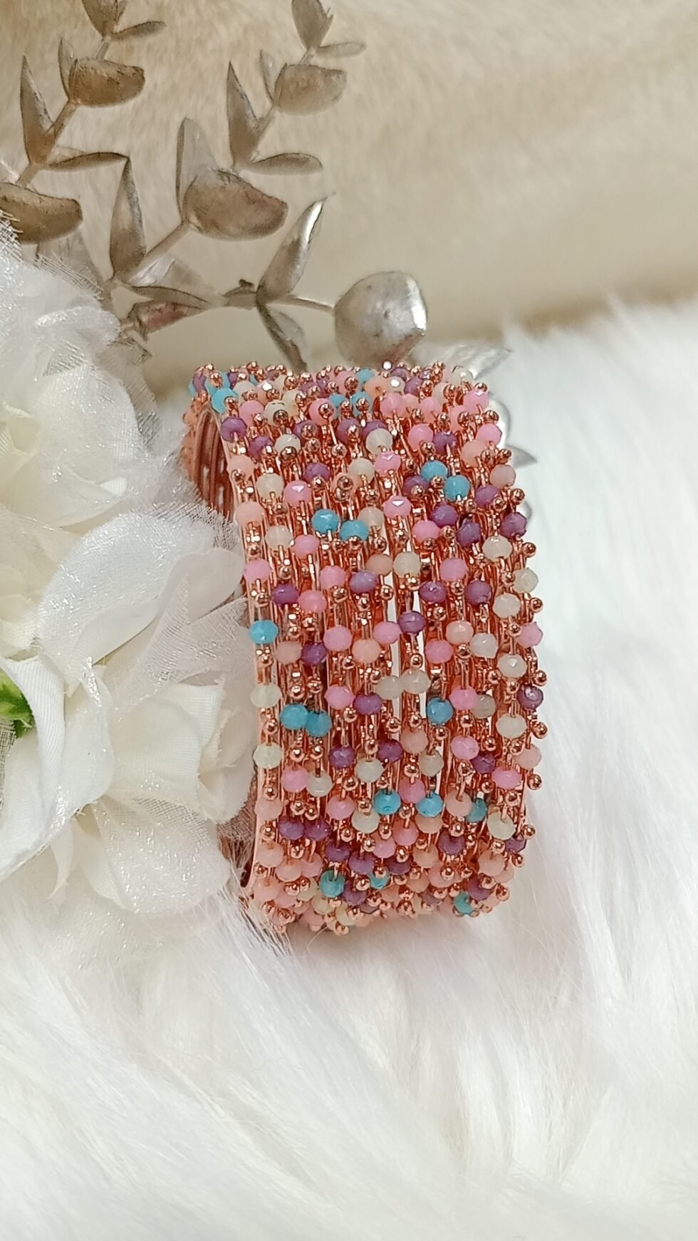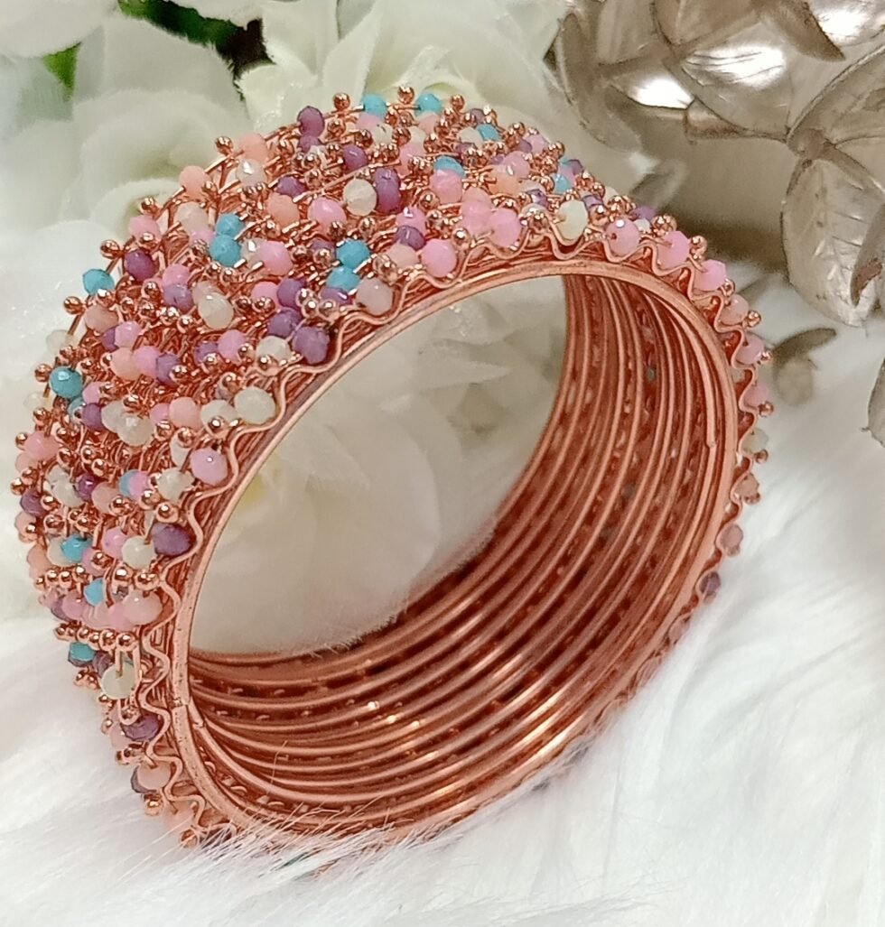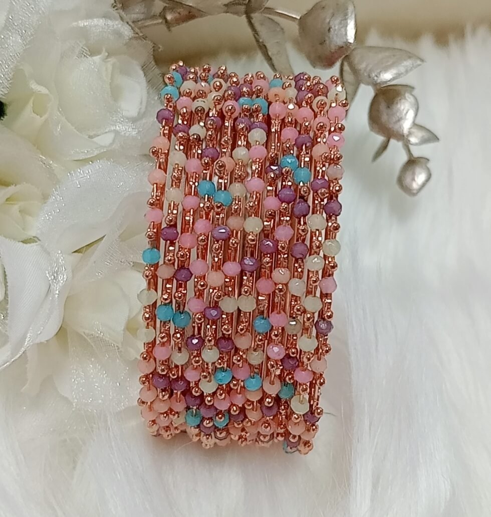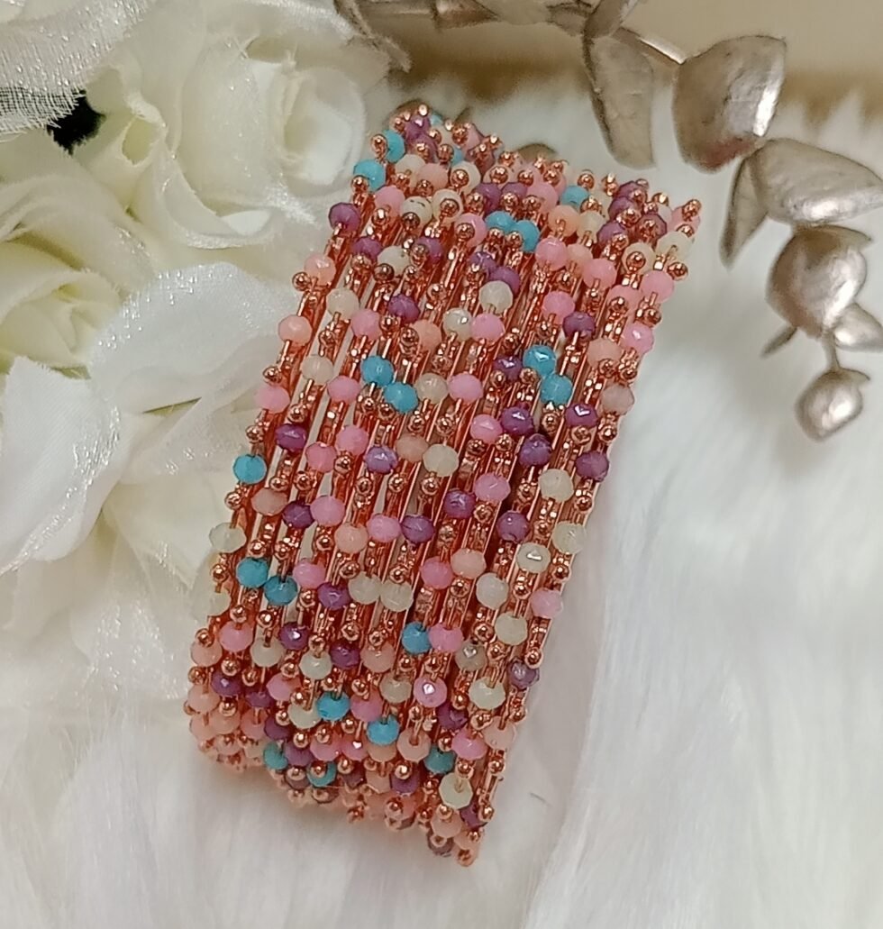 Pastel Multicolor 12pcs Beaded Rose Gold Bangle Set