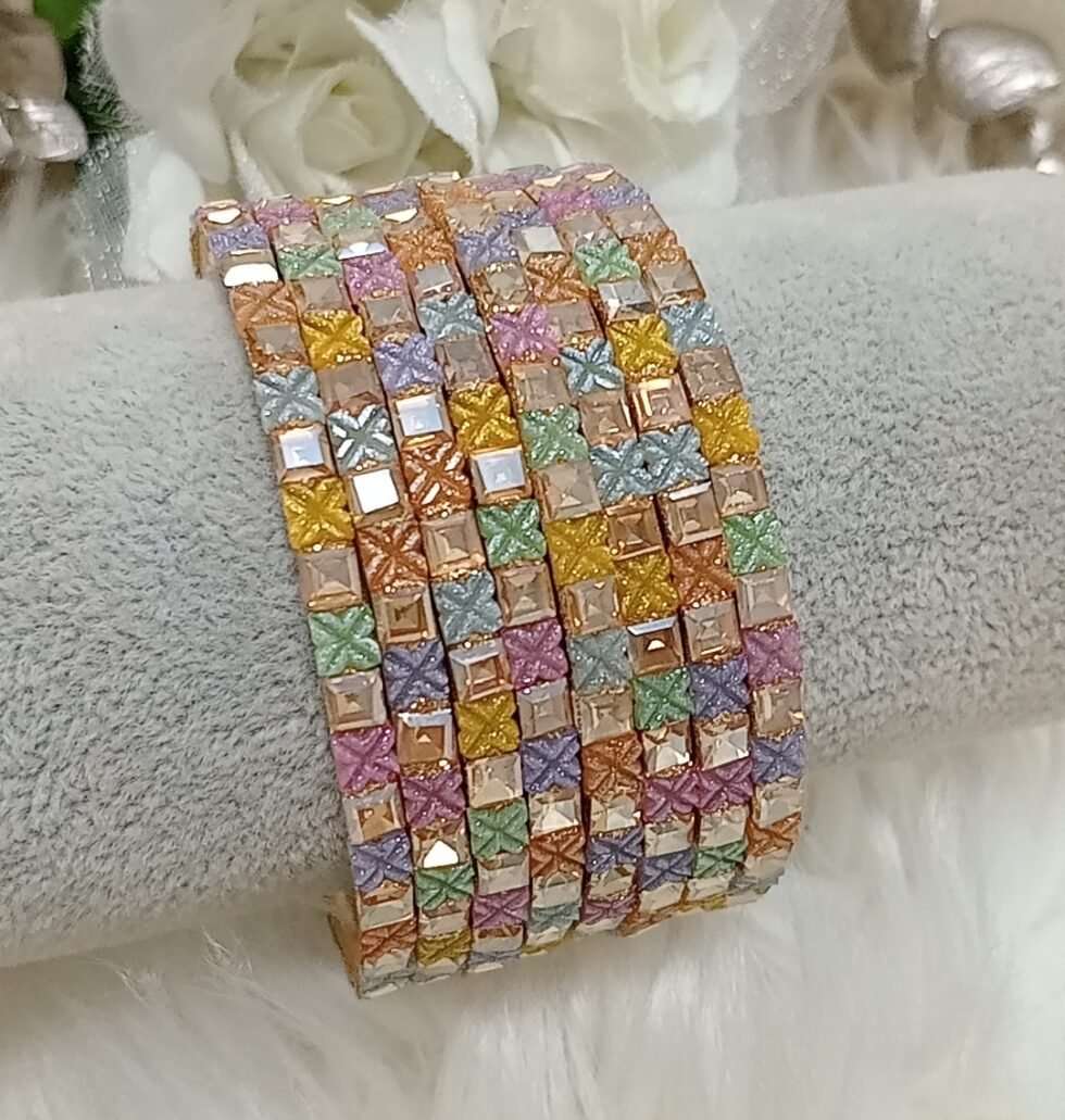 This sweet 8-piece pastel multicolor bangle set features soft, elegant shades of light green, light purple, and light pink, perfect for a subtle and stylish traditional look. Made for comfort and charm, these Indian bangles for women are lightweight and ideal for daily wear, casual ethnic outfits, or pairing with kurtis, salwar suits, and sarees. A must-have addition to any ethnic jewelry collection, these pastel bangles bring a modern twist to traditional Indian accessories.