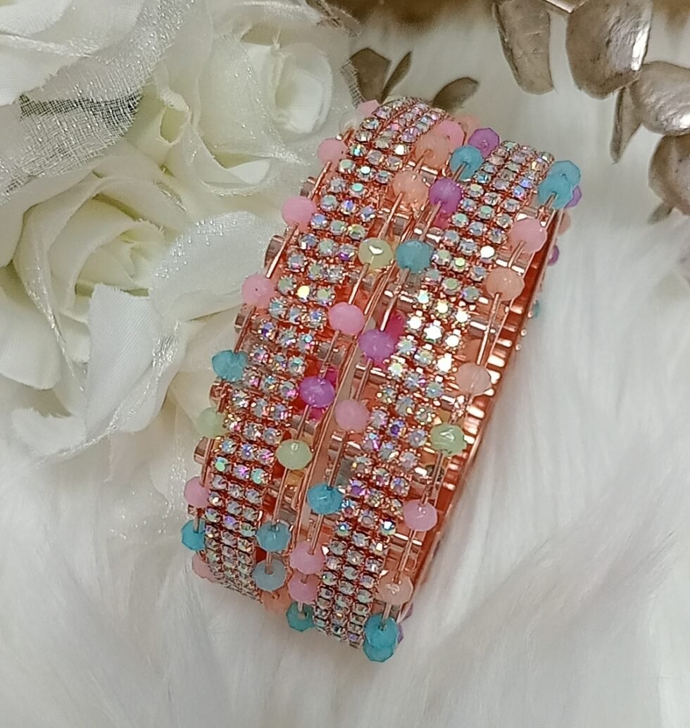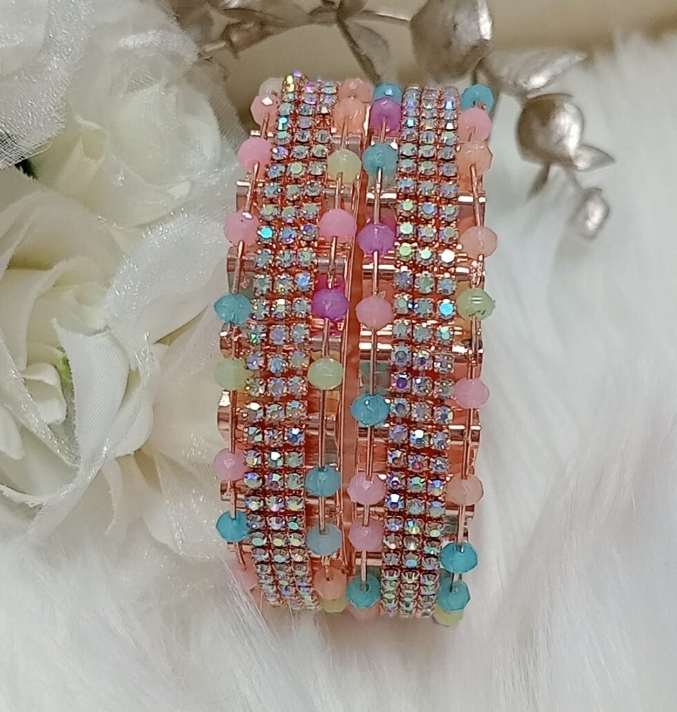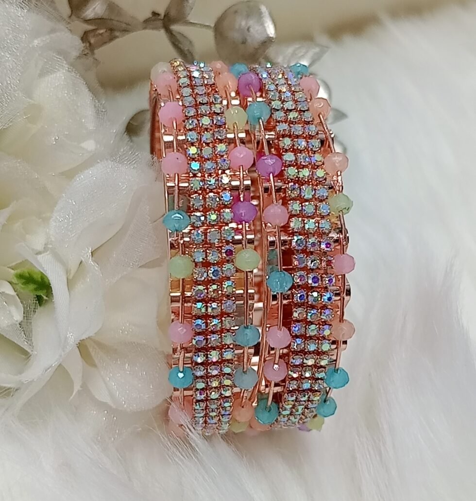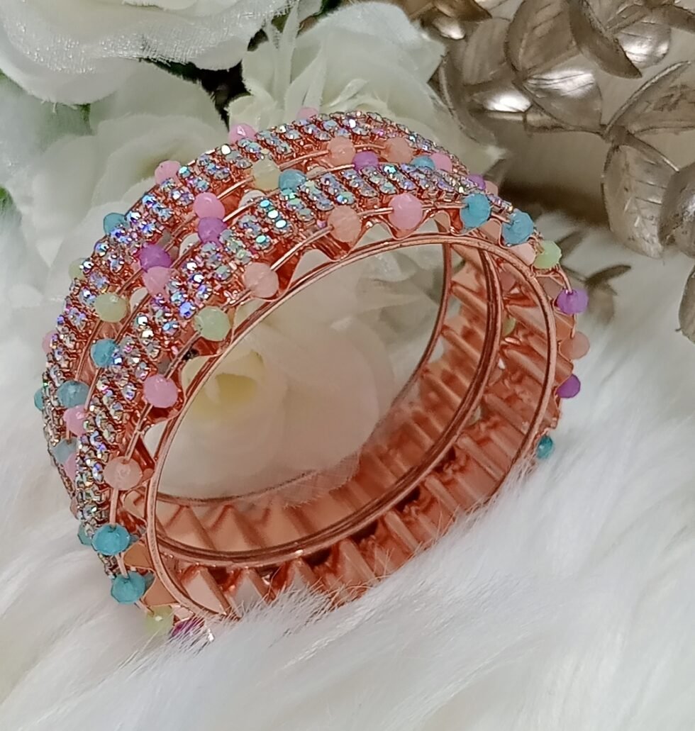 Pastel Multicolor Beads Rose Gold 2pc Bangle Set