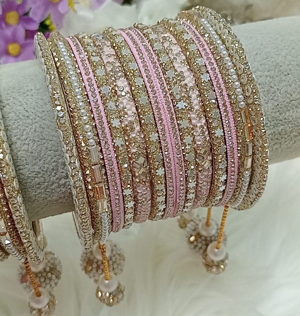 Pink Gold Customised Indian Bangle Set