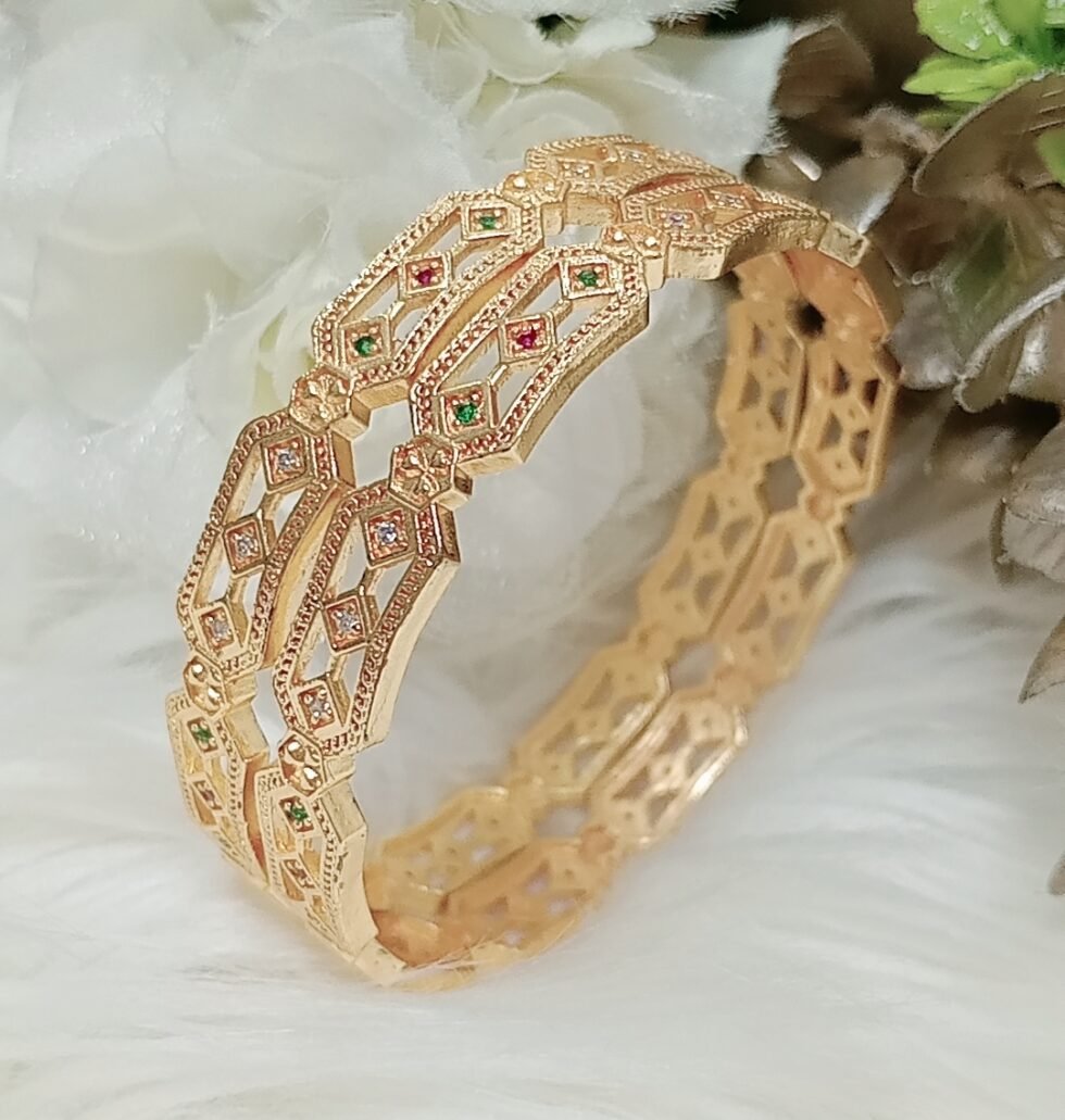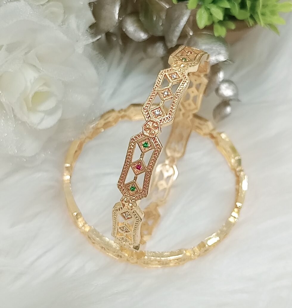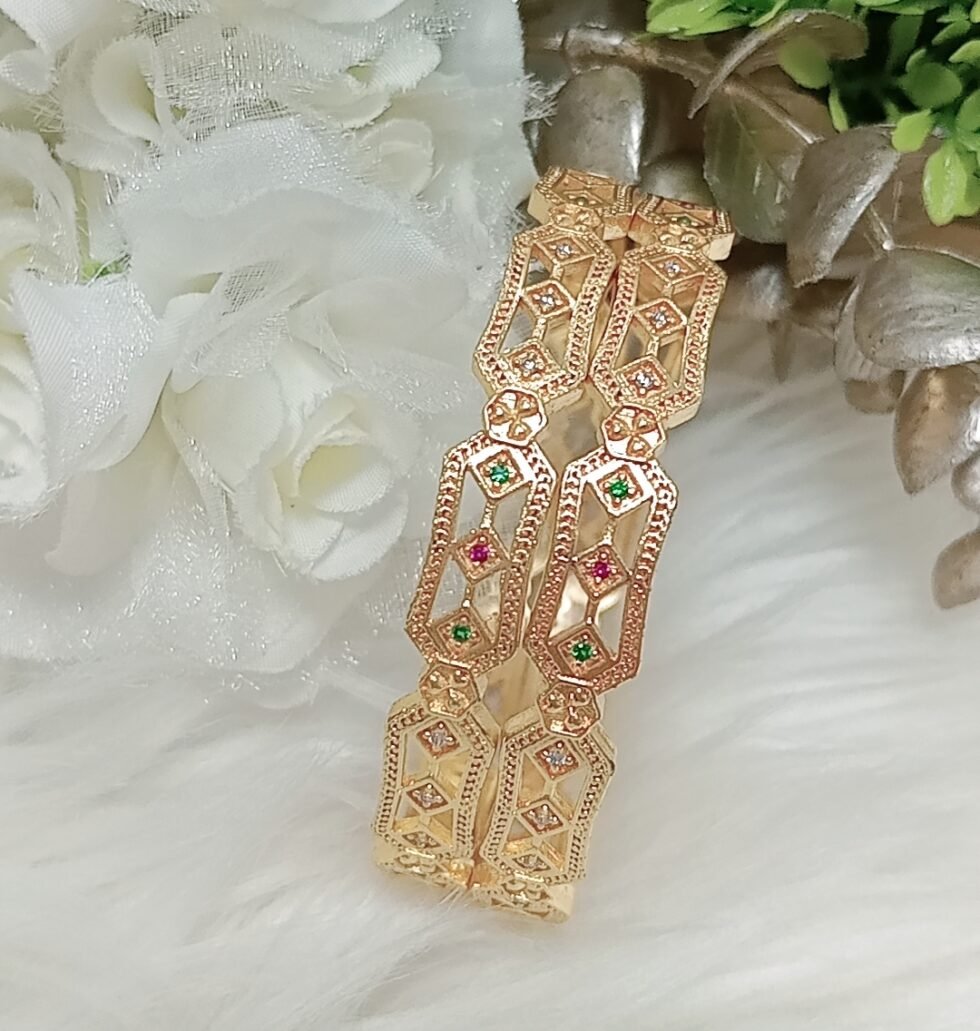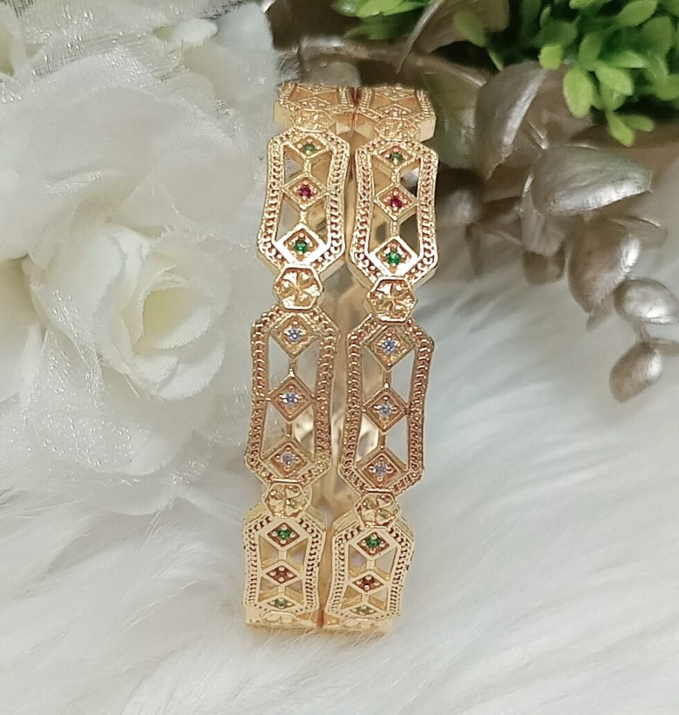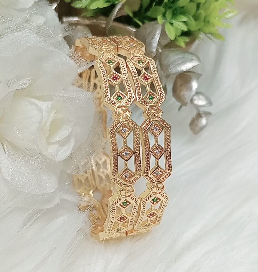 Pink Green Gold Plated 2pc Indian Bangle Set