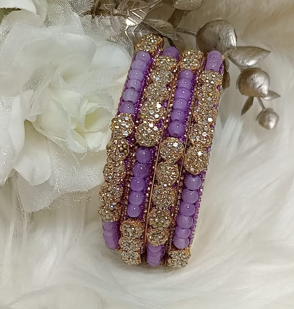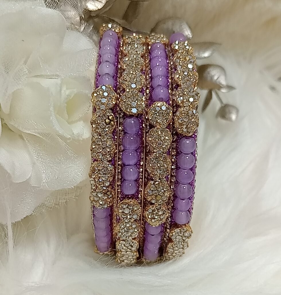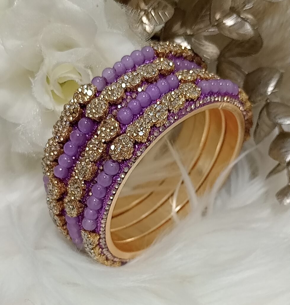 Princess Designer Purple Gold Floral 4pc Indian Bangle Set