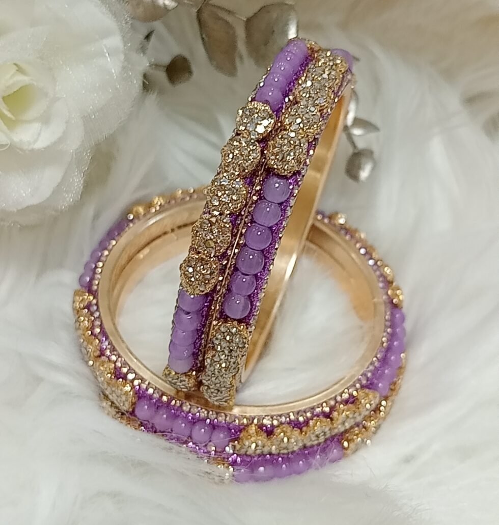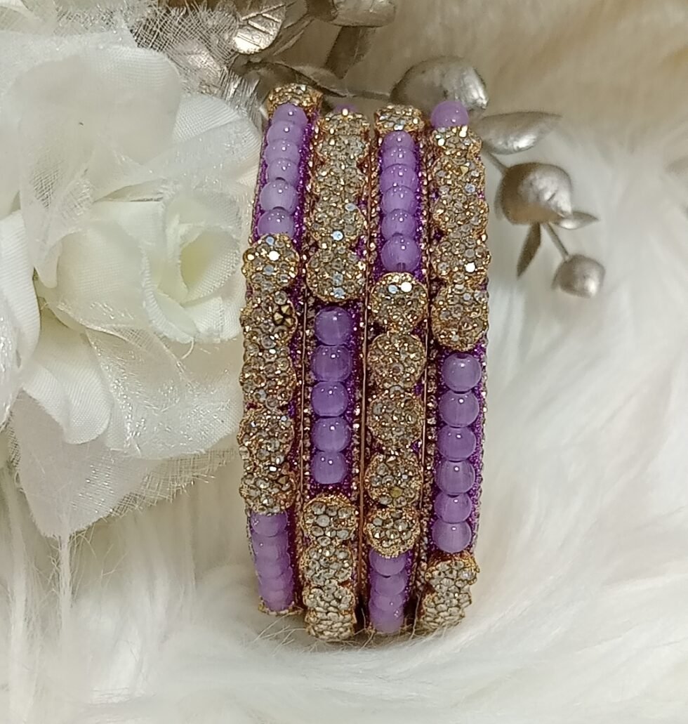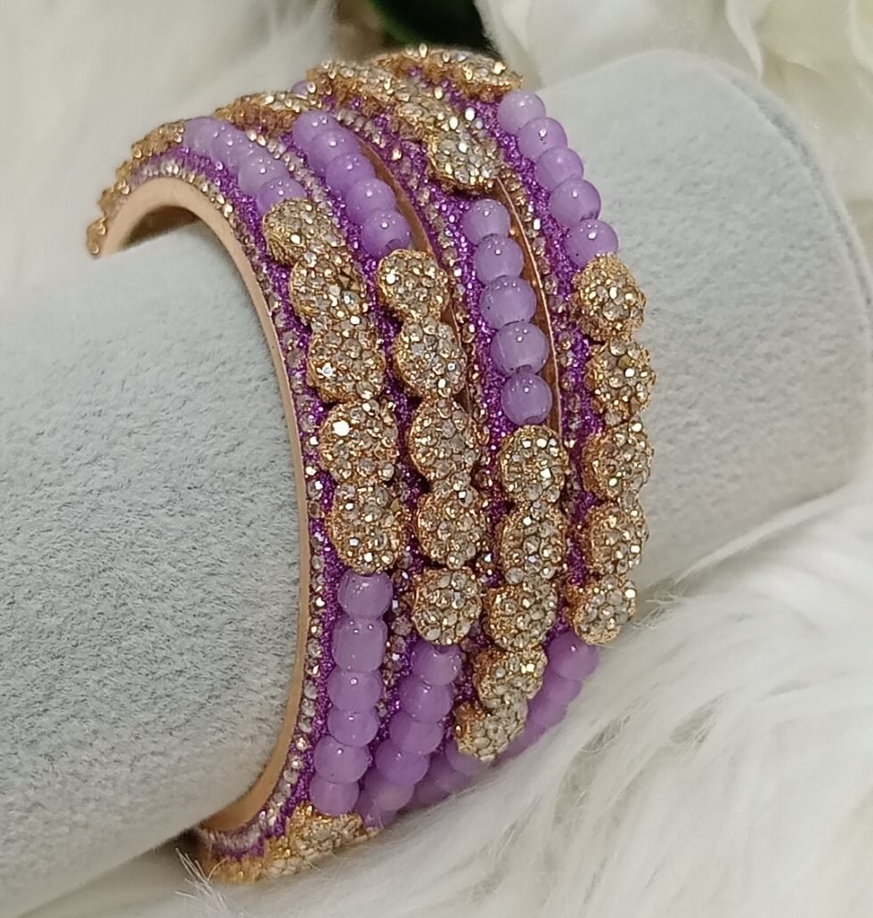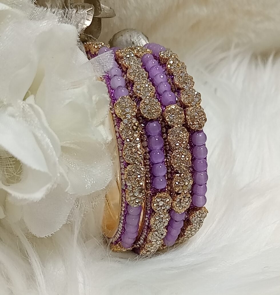 Princess Designer Purple Gold Floral 4pc Indian Bangle Set