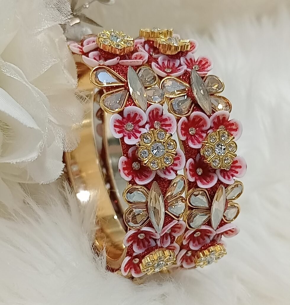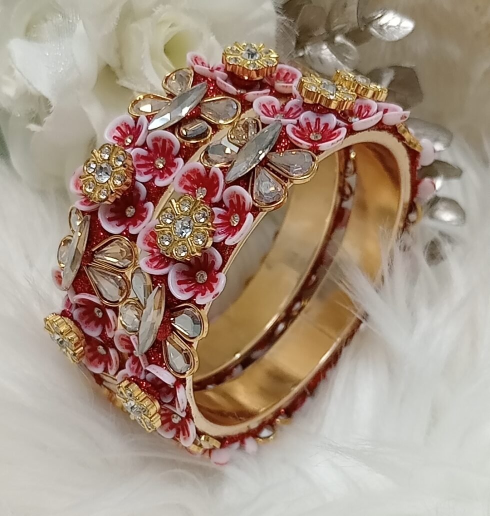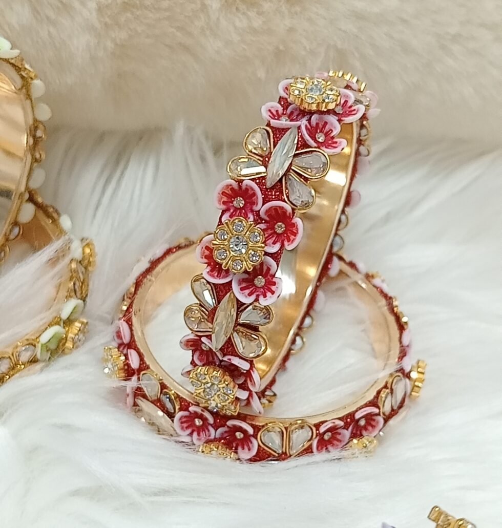 Enhance your traditional look with this Purple-Orange Indian Flower Bangle Set featuring a gold base and intricate floral designs. Perfect for weddings, festivals, or daily ethnic wear, these handcrafted bangles for women blend vibrant colors with timeless elegance. A must-have floral bangle set to pair with any saree or Indian outfit.