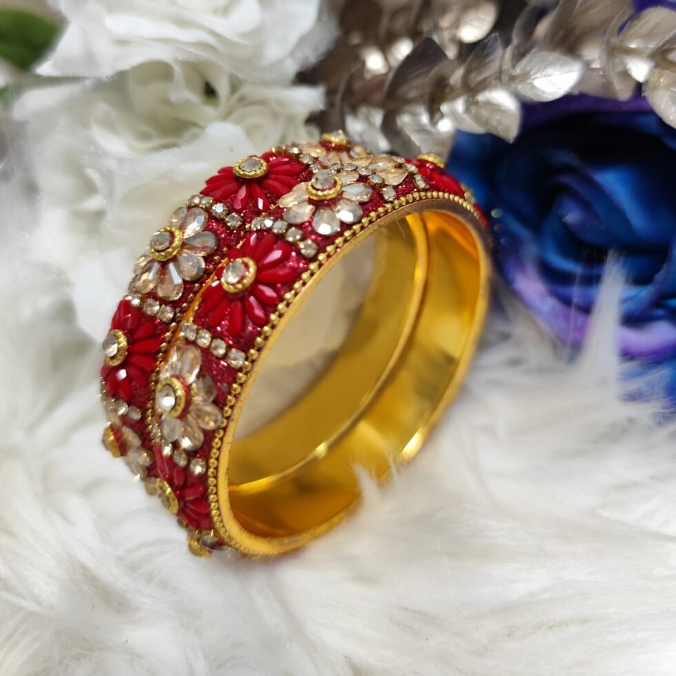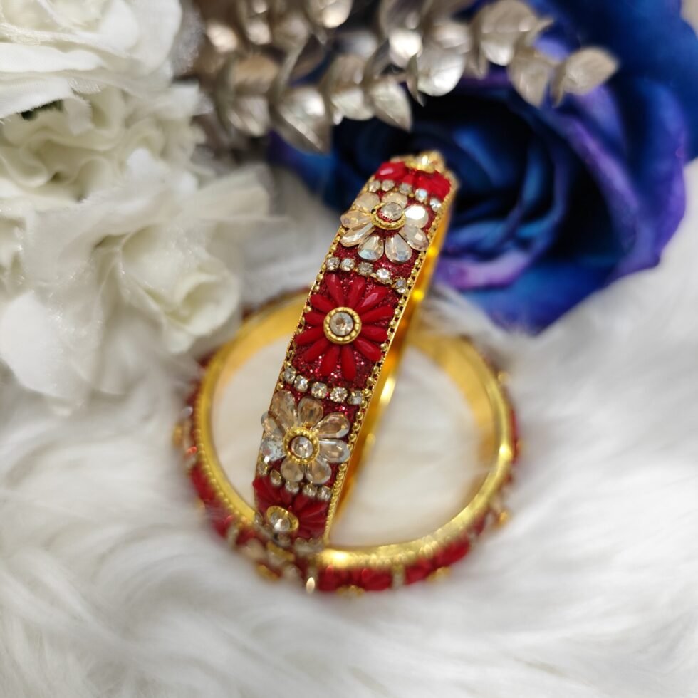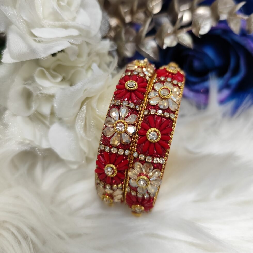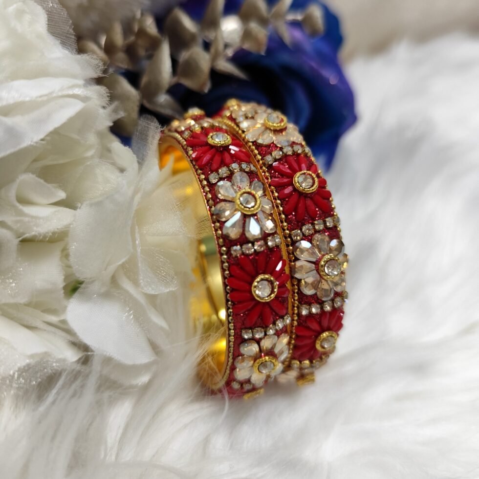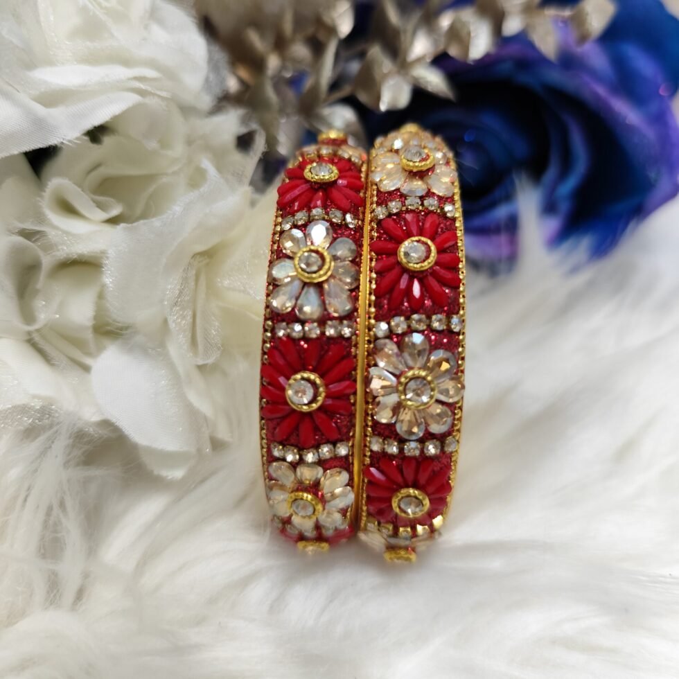 Red Floral Designer Indian Bangle 2pc Set