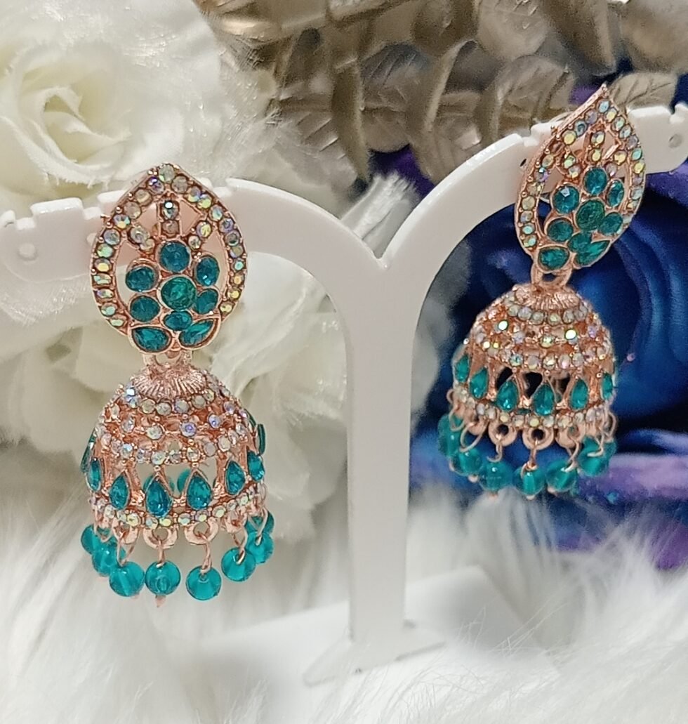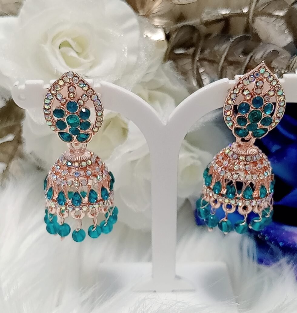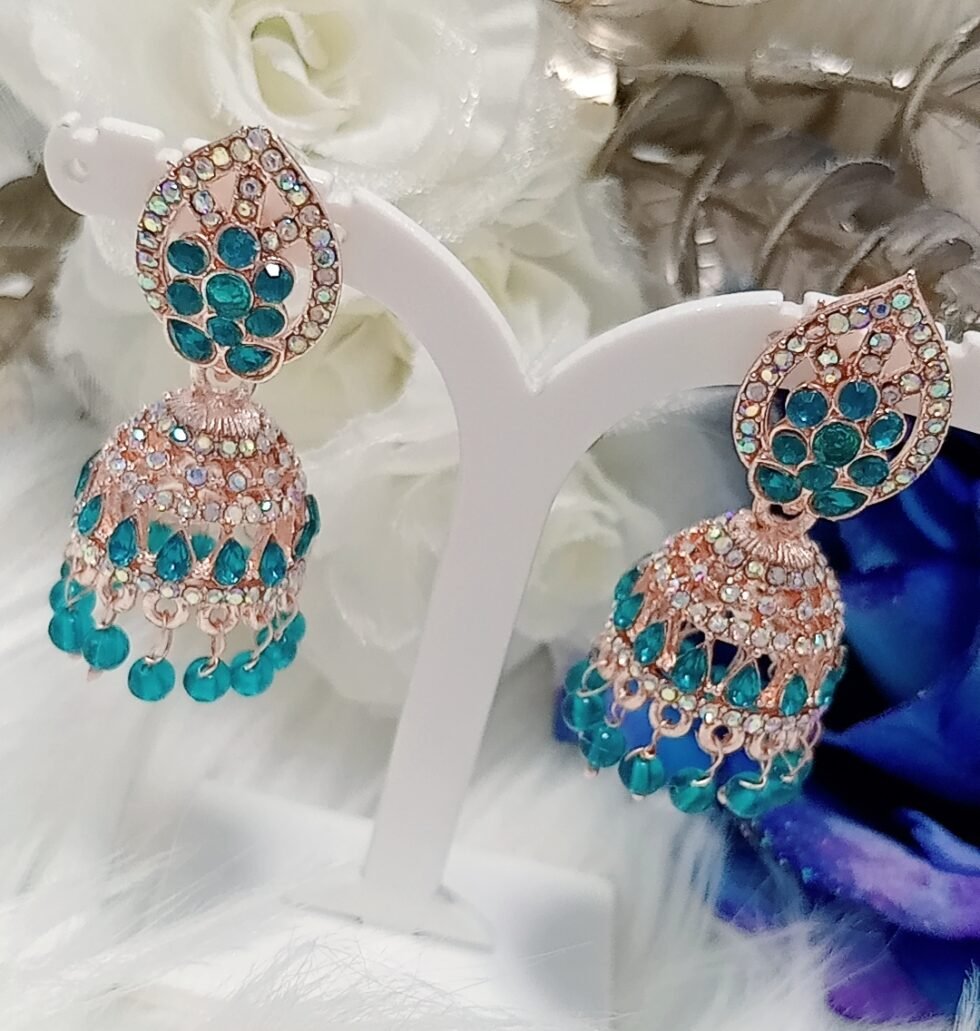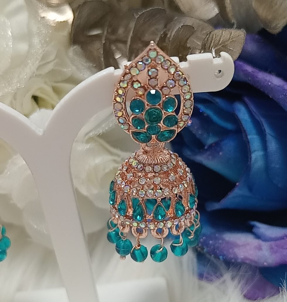 Turquoise Floral Rose Gold Jhumka