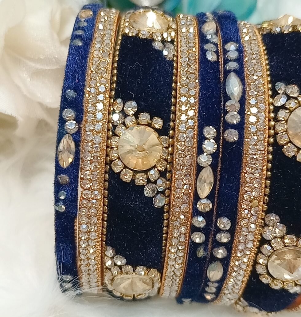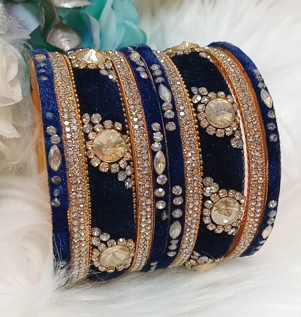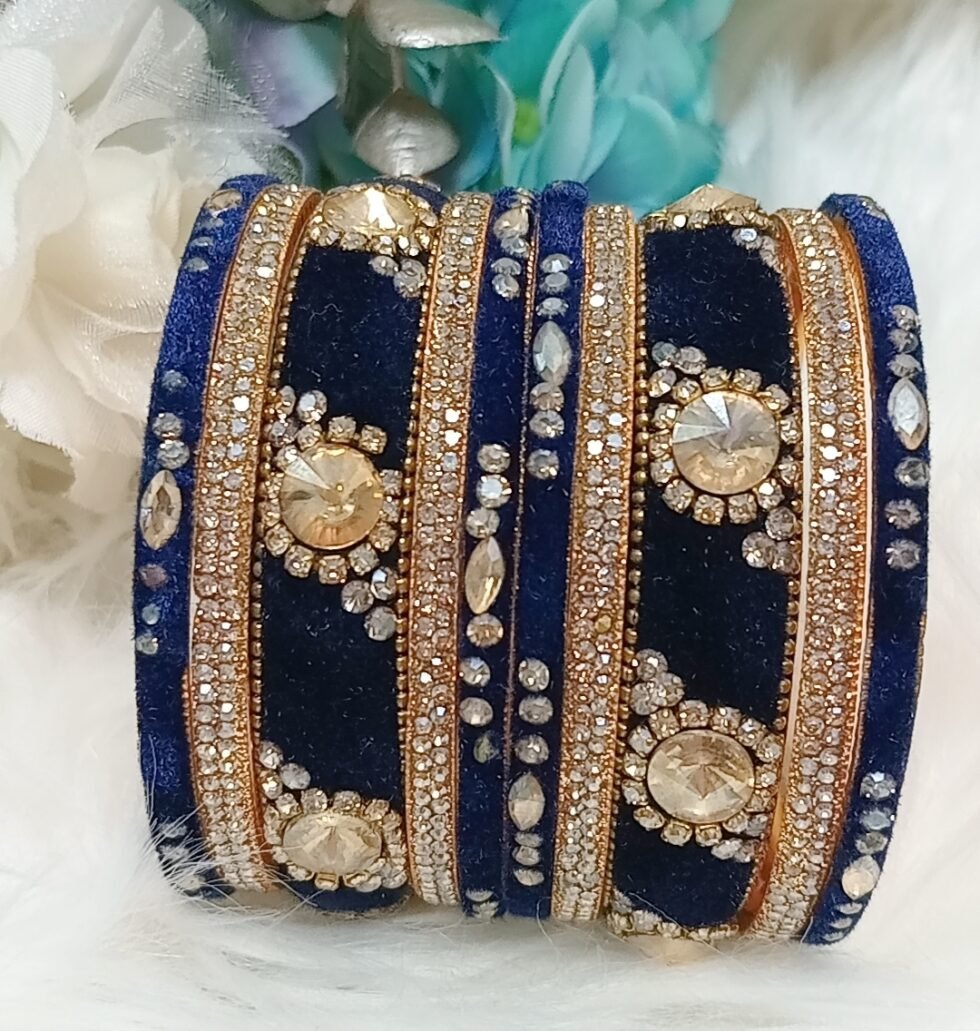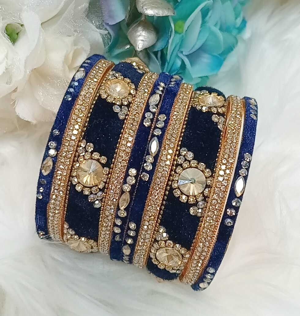 Velvet Navy Blue Gold 10pc Bangle Set