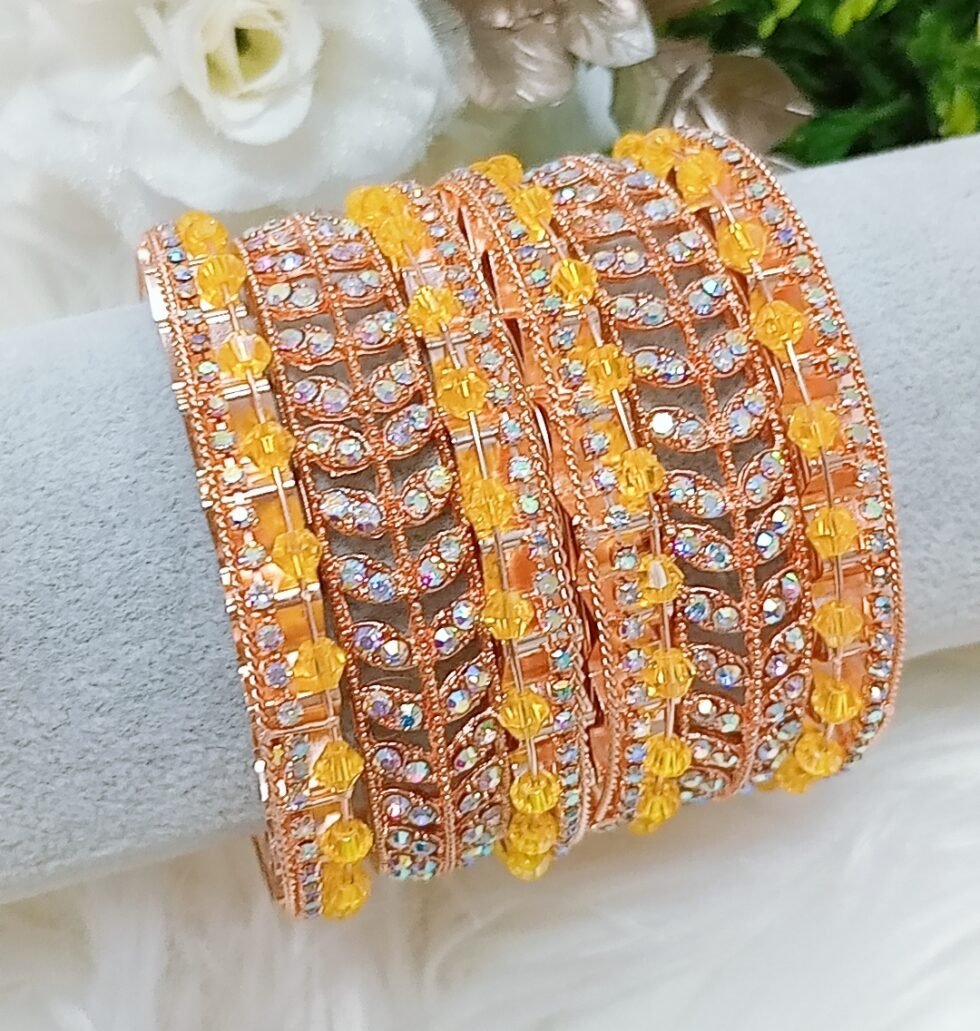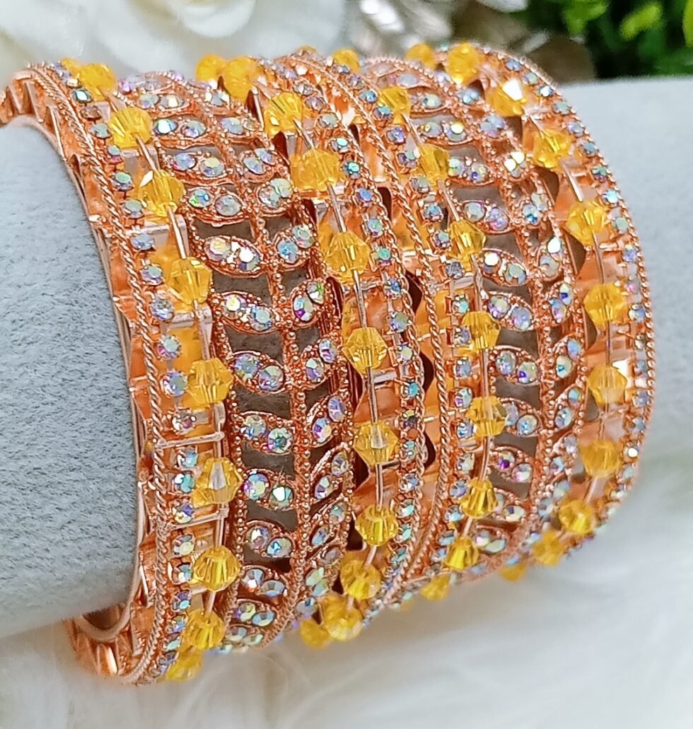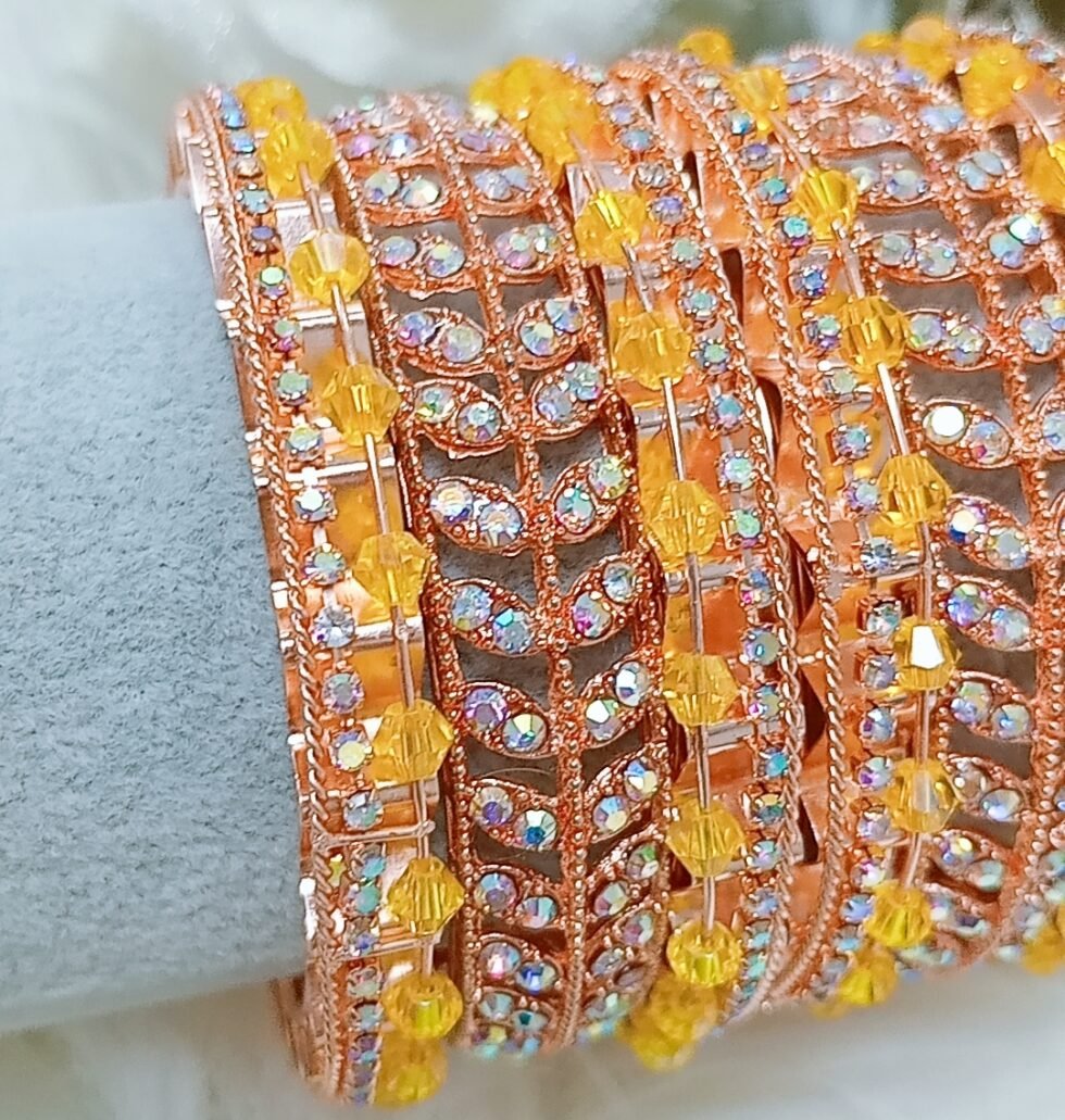 Yellow Rose Gold Mix Match Crystal Bangle Set